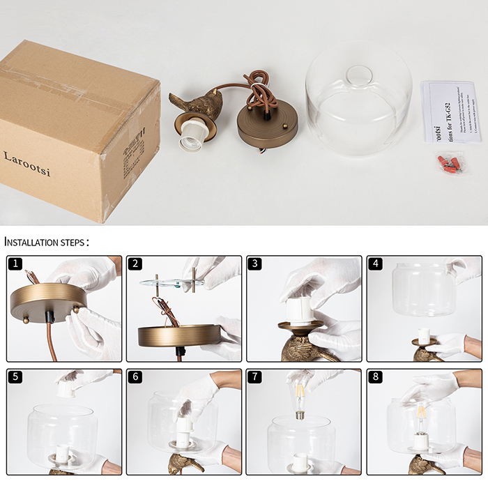 6.易于安装-安装这种鸟类吊灯非常容易。如果在运输过程中零件损坏或丢失或安装过程中出现问题,请联系我们。我们将在24小时内帮助解决问题。