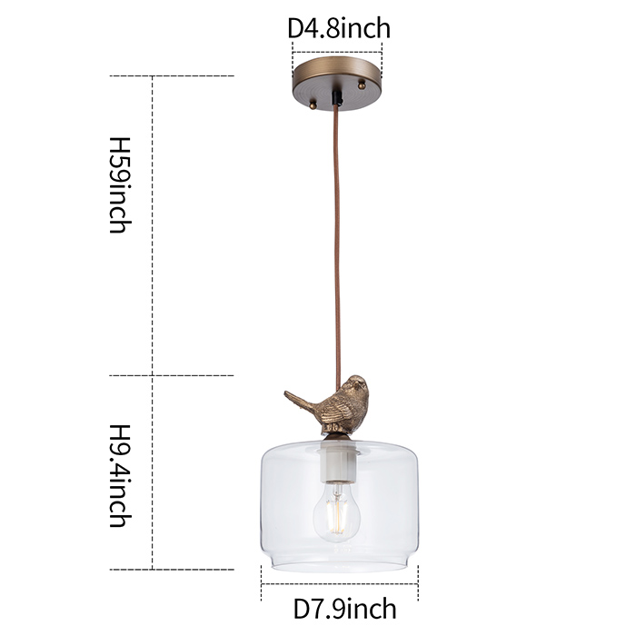 1.尺寸-直径7.9英寸x高度9.4英寸,吊线高度59英寸