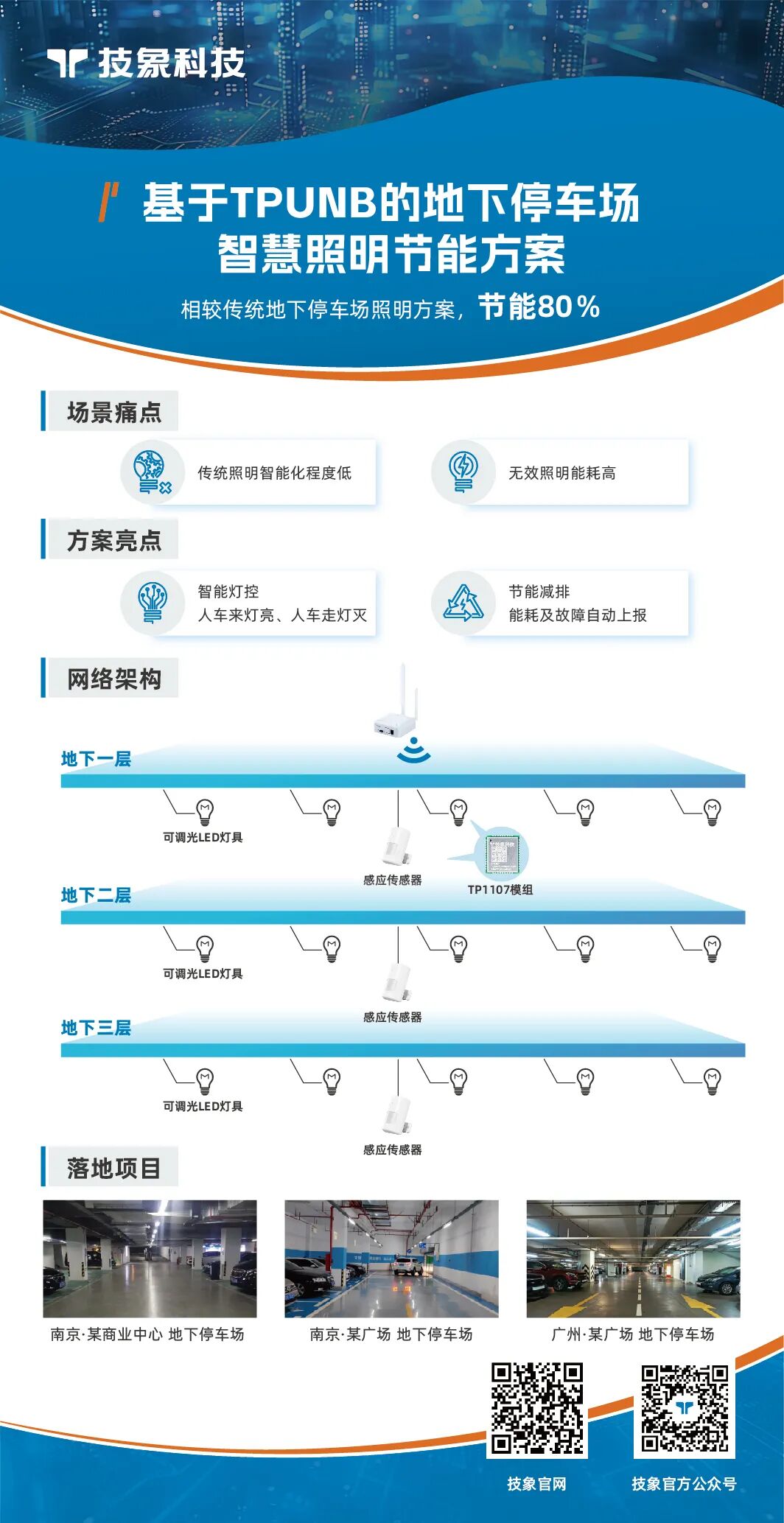 针对传统照明方案智能化程度低,无效照明能耗高的痛点问题,技象科技基于TPUNB打造的地下停车场智慧照明解决方案,可以实现智能灯控和节能减排,相较传统地下停车场照明方案,最多节能达80%!