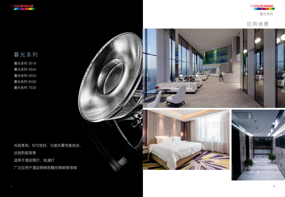 光斑柔和,均匀性好,与遮光罩完美结合, 达到防眩效果 适用于酒店筒灯、轨道灯 广泛应用于酒店照明和餐饮照明等领域