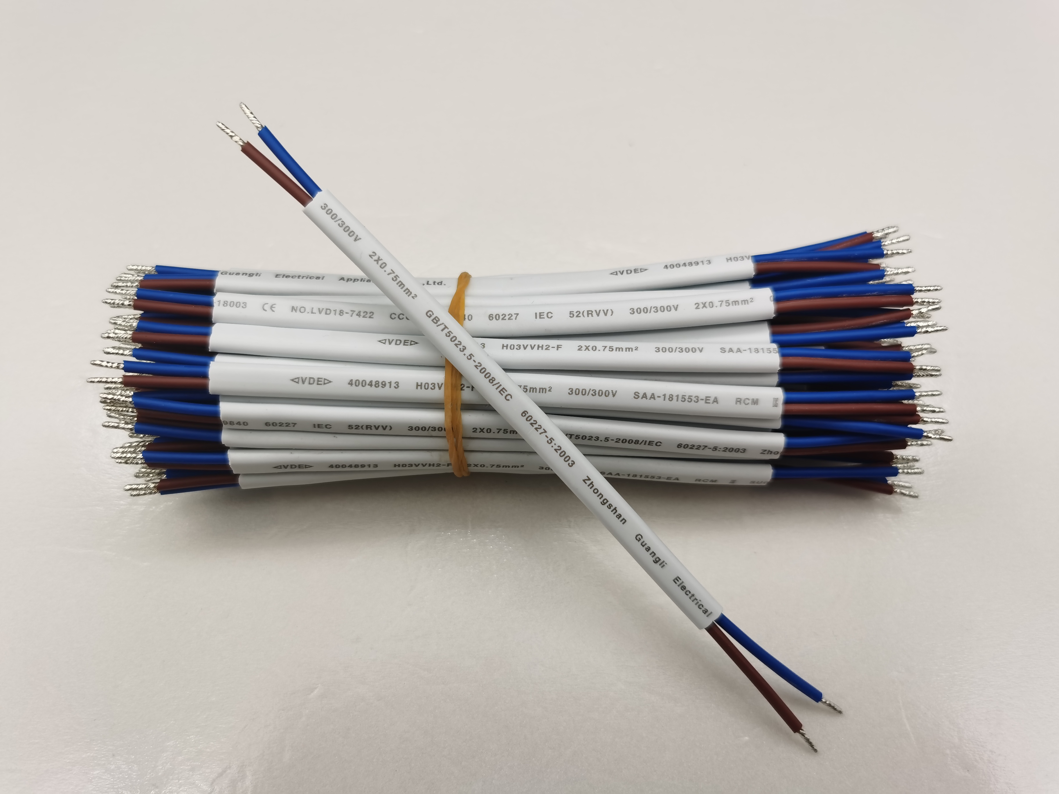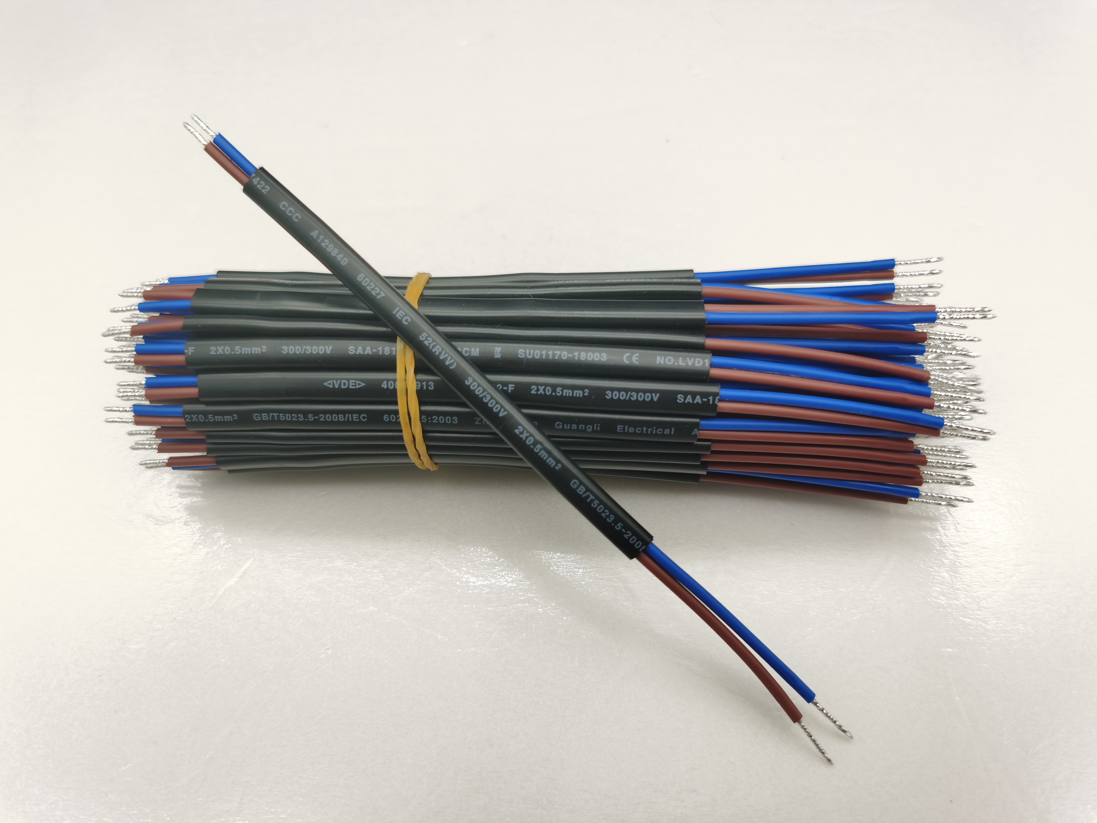 本厂主干力量从2007年起开始从事电子线加工生产,发展至今,已累积了丰富的生产及加工经验,目前本厂拥有拉线机、注塑机、全自动端子机、大型裁线机和电脑裁线机等各类生产加工机器近百台,主要生产和制作LED灯具类的支架线、电源线、灯头线、控制器线、高温线、各种公母对接端子线、防水插头线、AC和DC插头线等电器用线。线材可提供CCC、VDE和UL认证。
