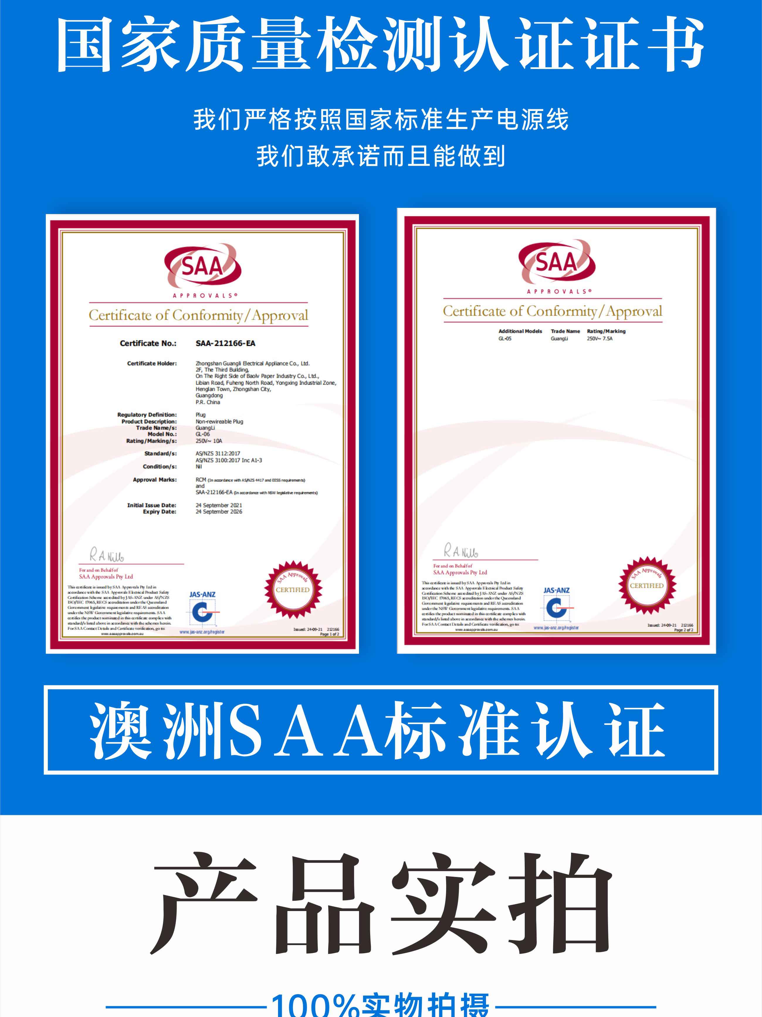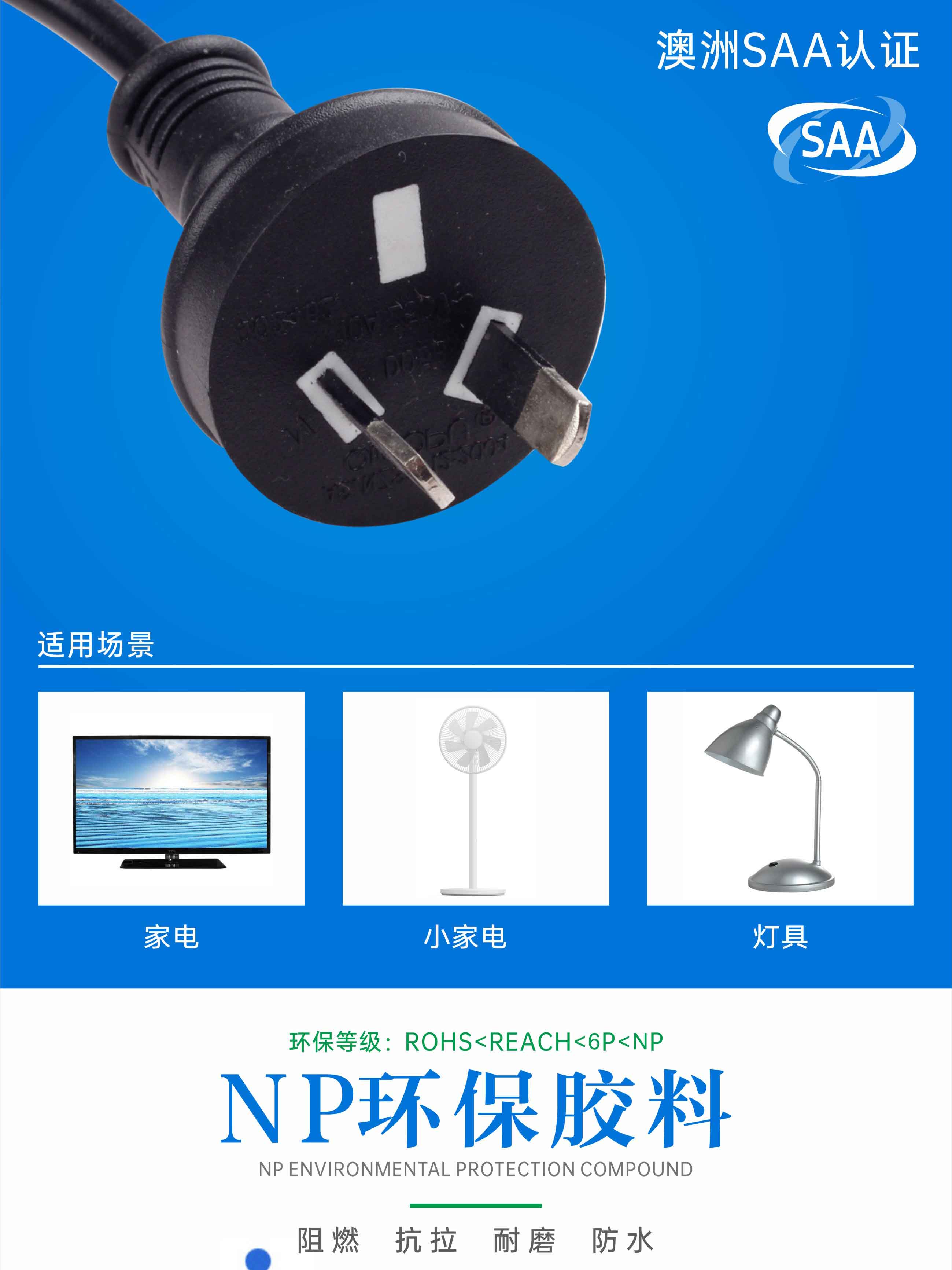 SAA澳标AC插头两插电源线pvc无氧铜二芯澳洲插头