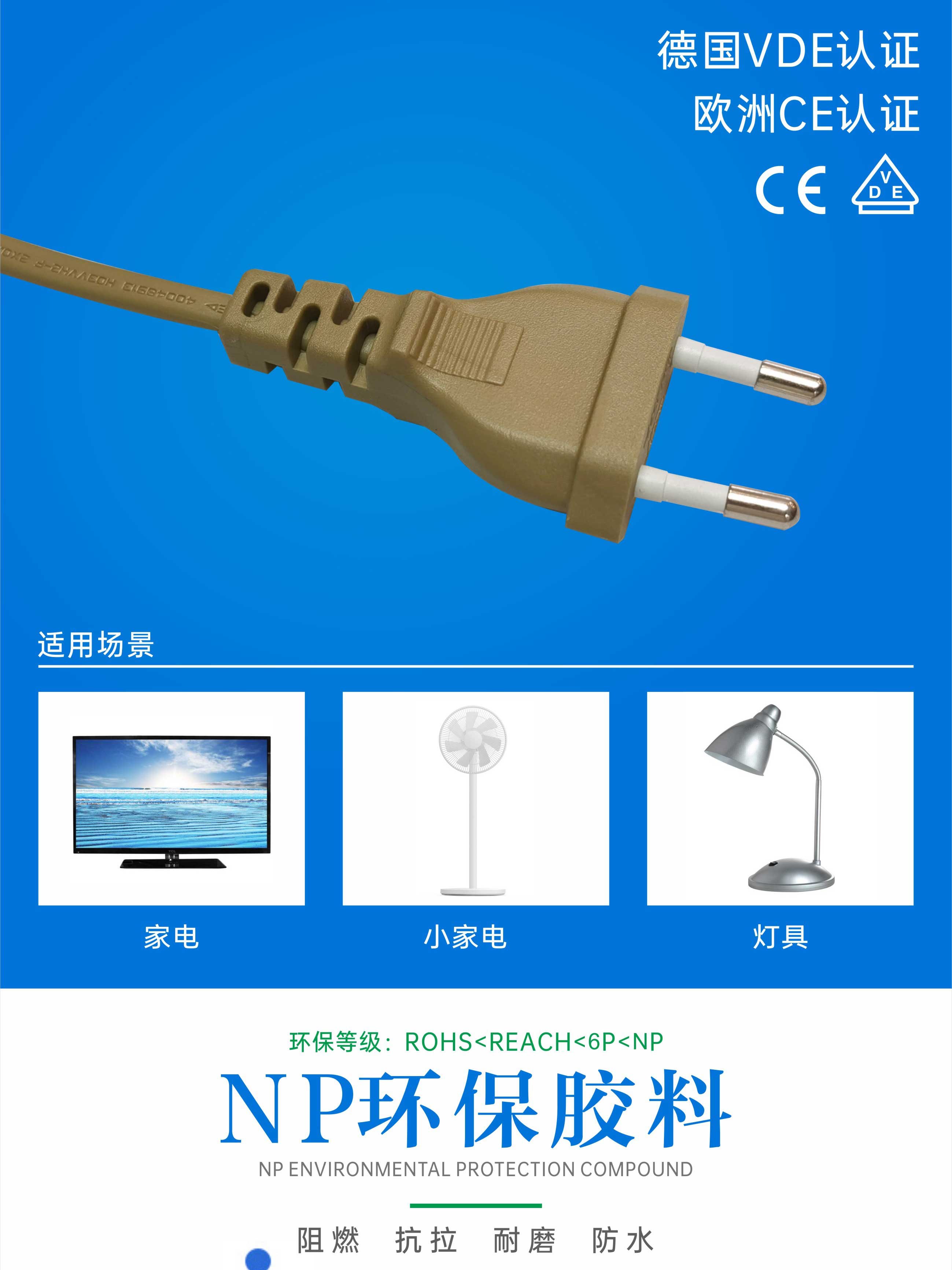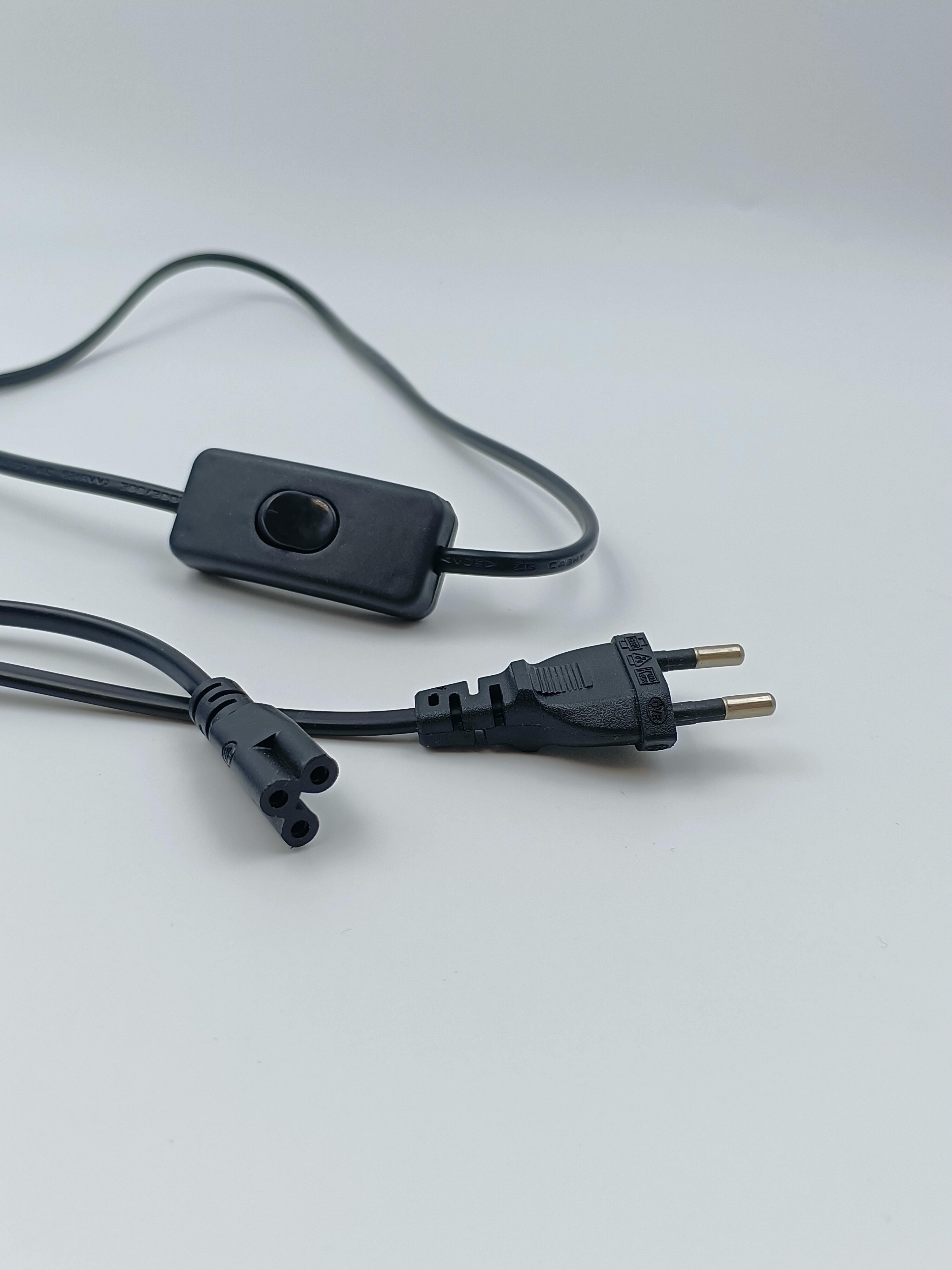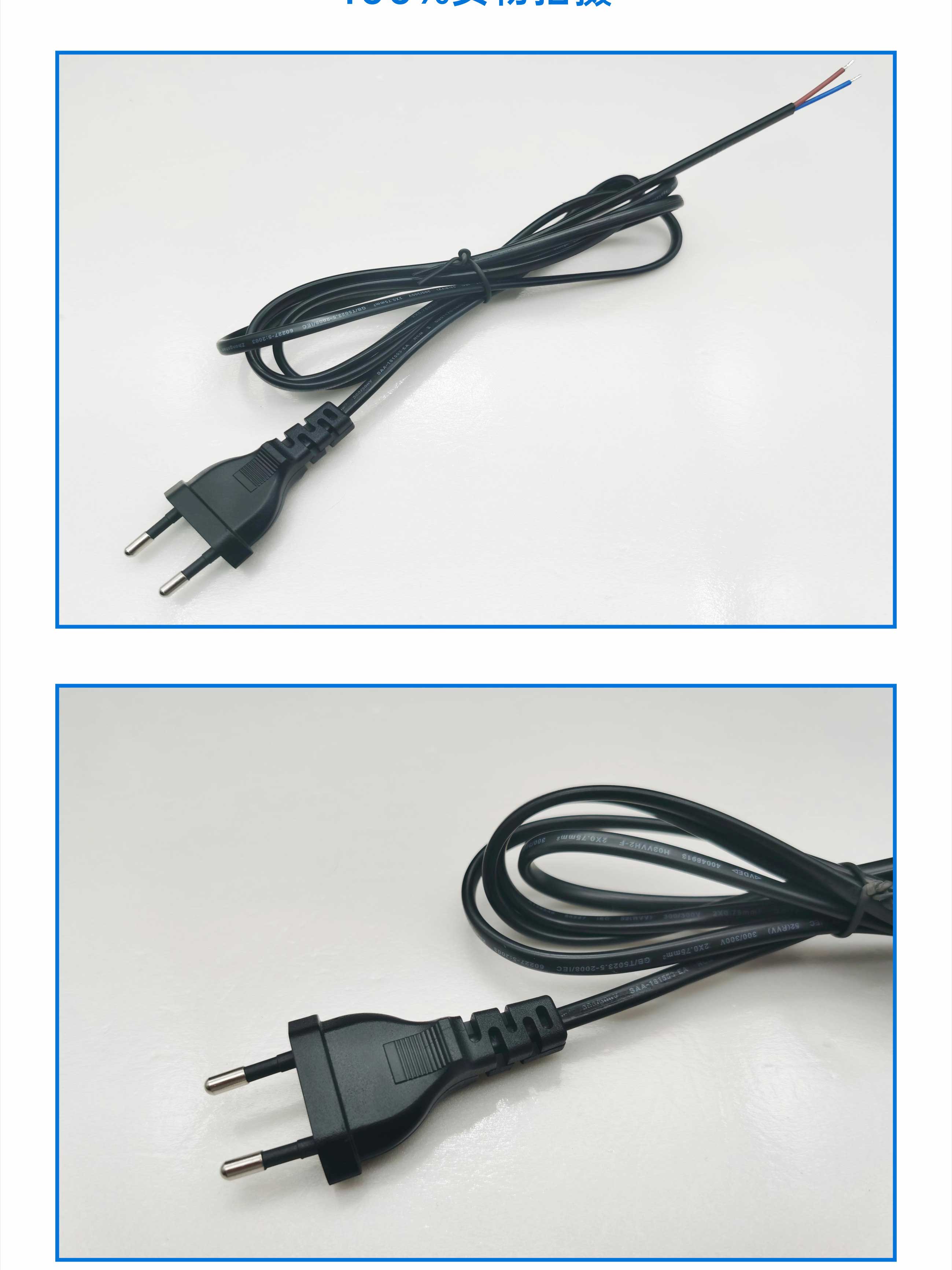 欧标两插VDE认证电源线2芯纯铜电源线加开关欧规两插