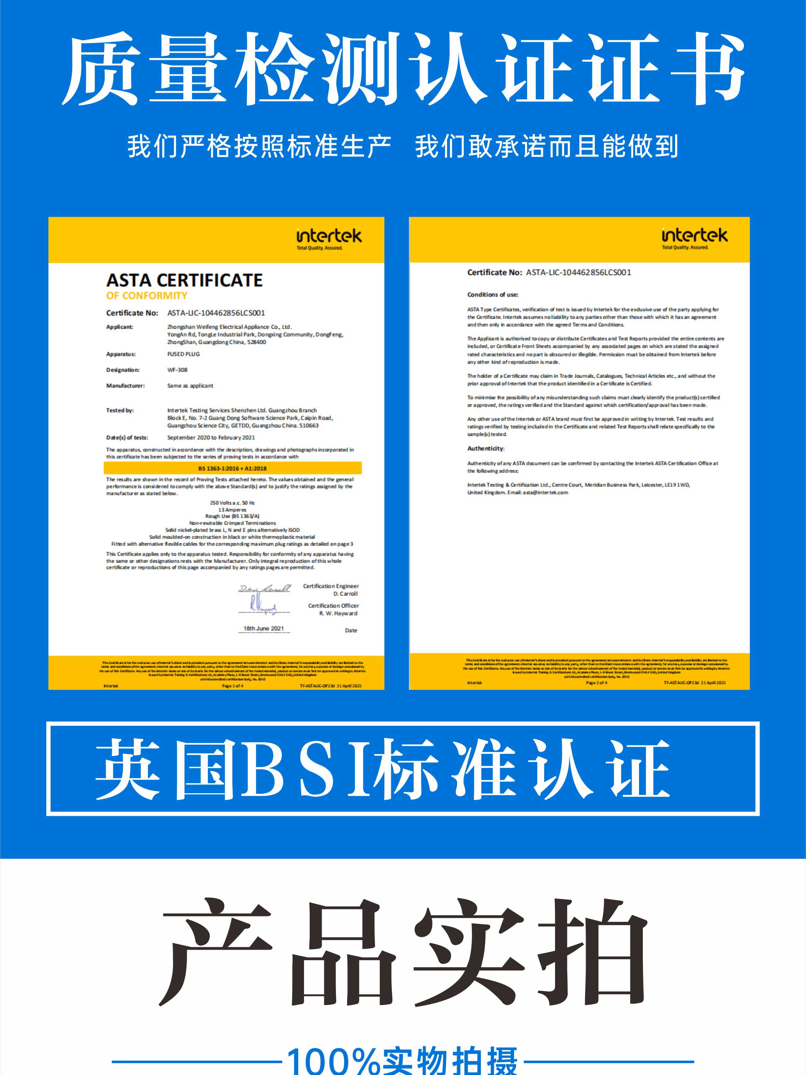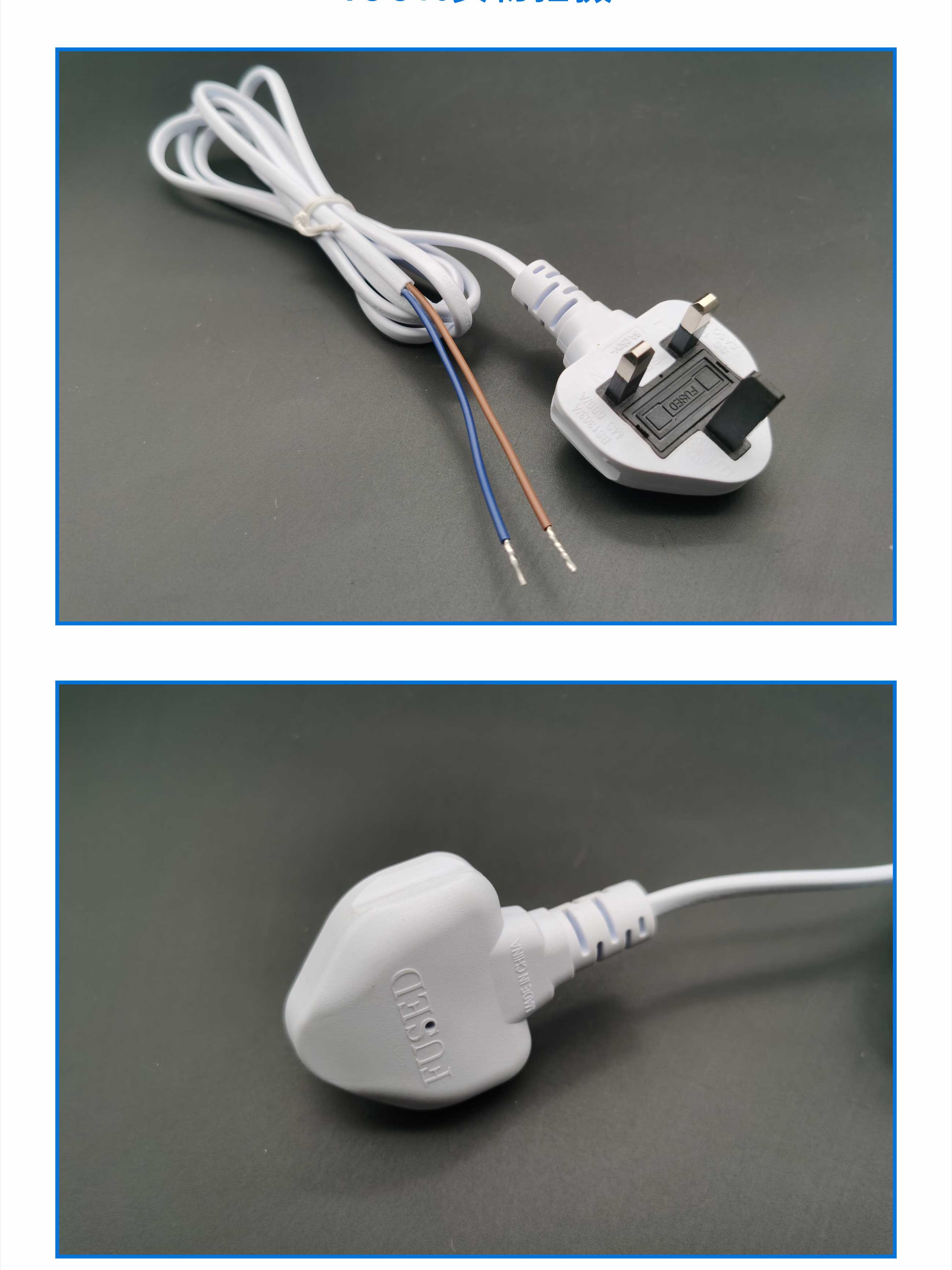 ASTA认证英标英规2插电源线 2芯无氧铜电源插头连接线