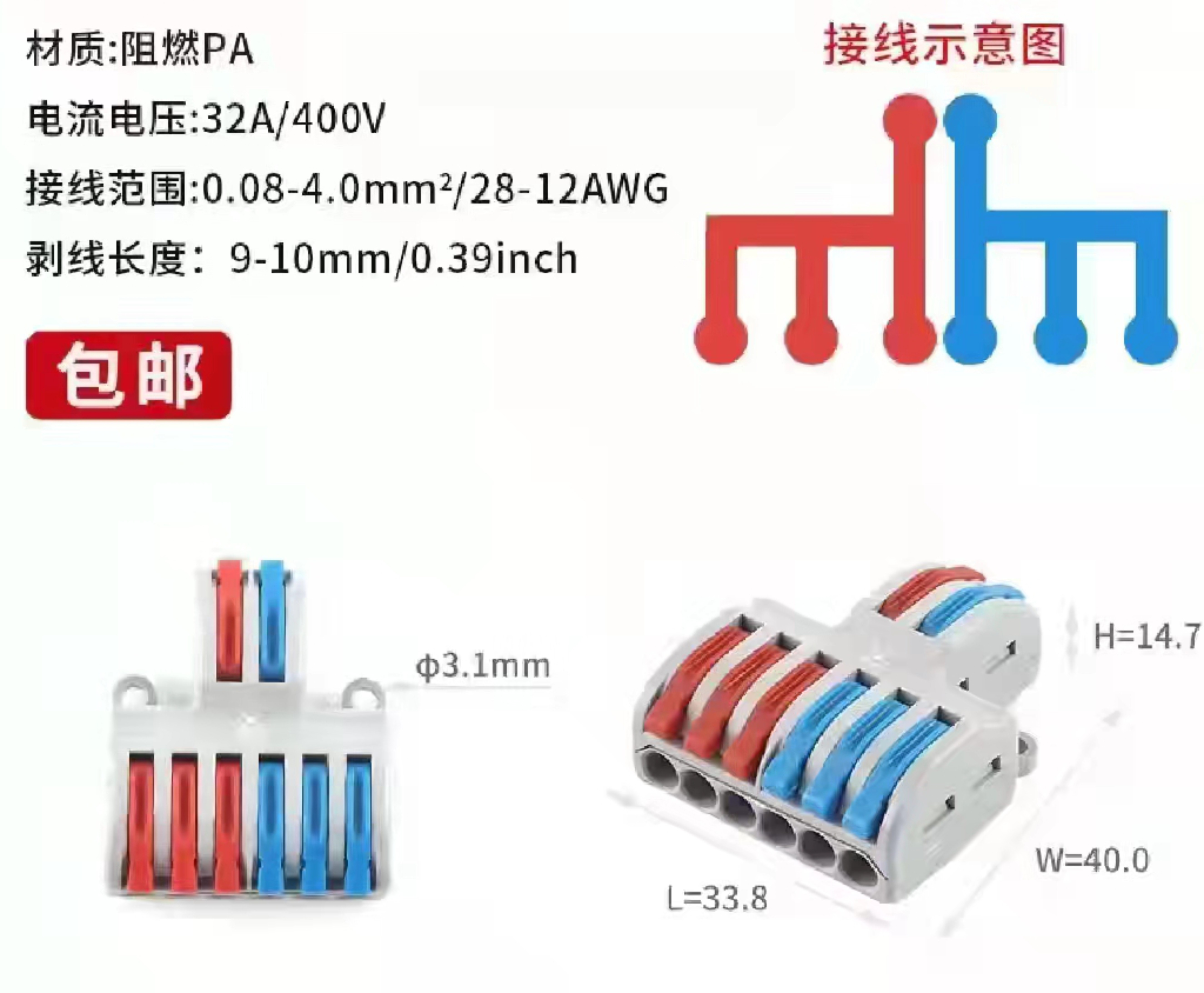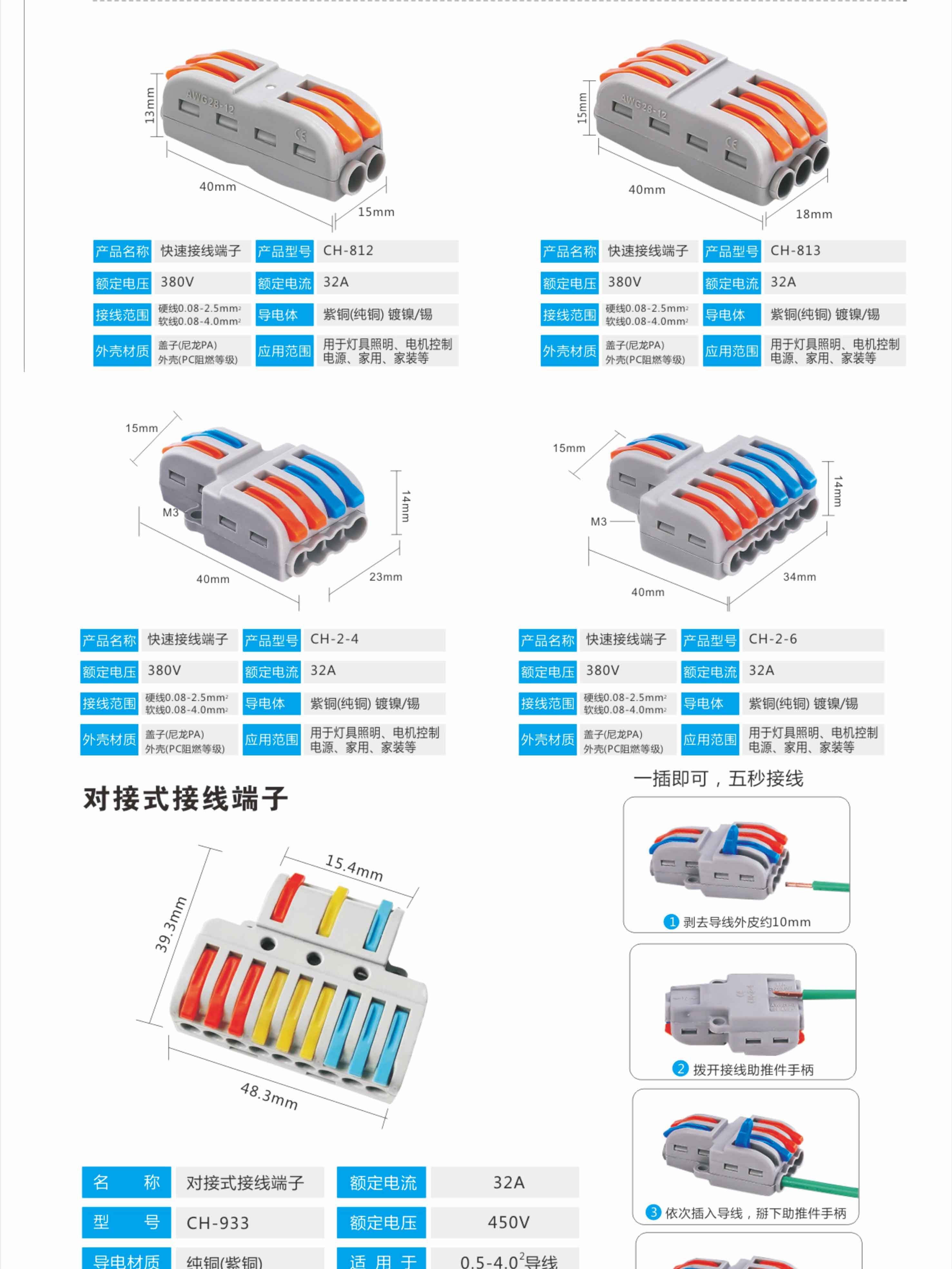 快速接线端子 按压式快速接线端子 阻燃接线端子