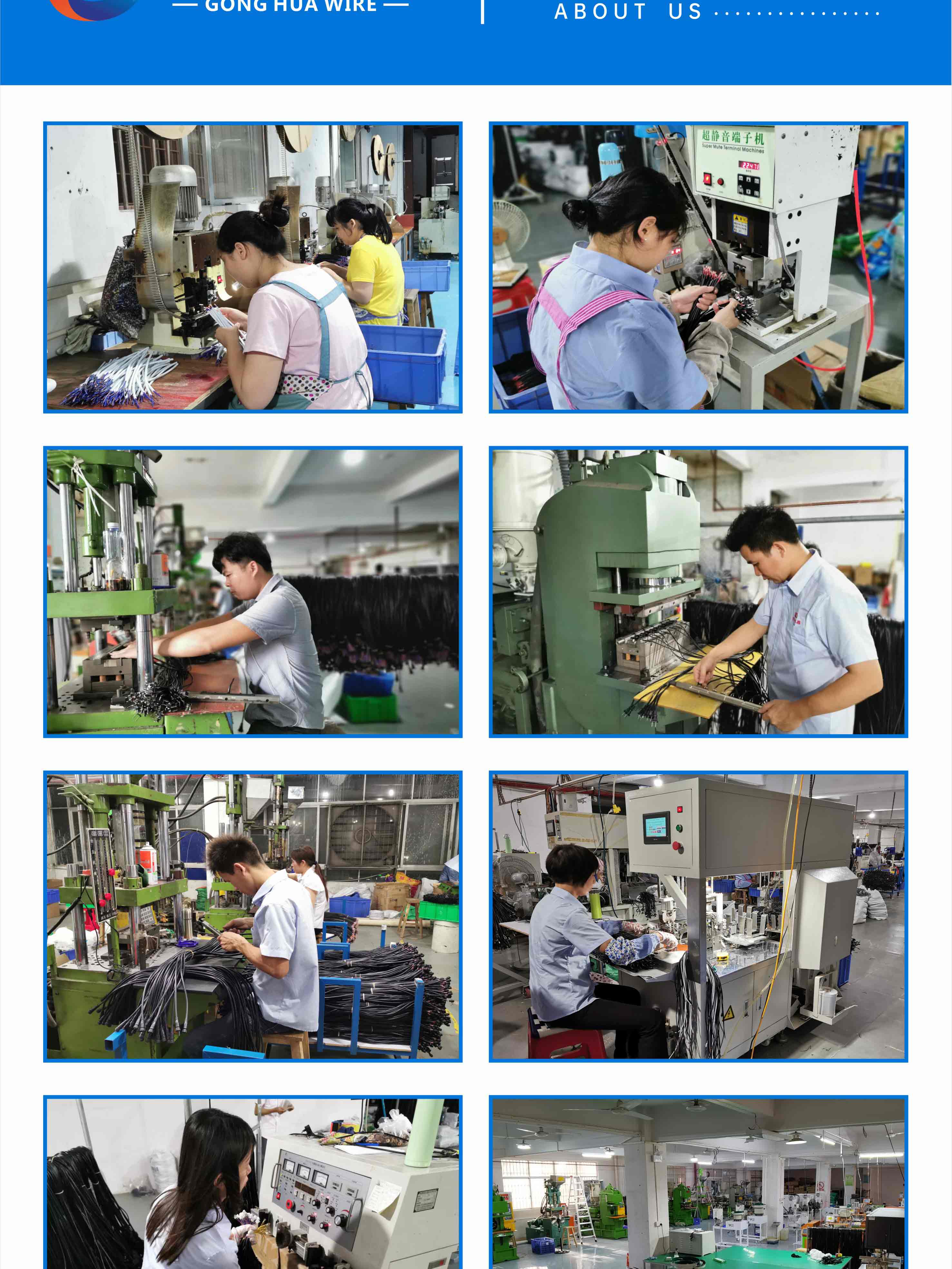 公司骨干力量从2007年起开始从事电子线加工生产,发展至今,已累积了丰富的生产及加工经验,目前本厂拥有拉线机、注塑机、全自动端子机、大型裁线机和电脑裁线机、扎线机等各类生产加工机器近百台,主要生产和加工电子线、护套线、橡胶线、高温线、AC插头线、DC插头线、防水插头线、线束、贴片端子等电器用线。线材可提供CCC、VDE、KC、SAA、PSE和UL认证。本厂始终贯彻用良“芯”,做好线的原则,遵循“质量、速度、服务”的经营理念,坚守底线,诚信待人现已累积了以珠三角为主,覆盖全国及其他部分国家的大量长期稳定客户,是诸多电源控制器、照明及电器企业值得信赖的优质配件供应商。为适应市场,满足广大客商的需求,还可代客开模,共同开发各类新的线材类产品,并协助客户制定产品布线方案,欢迎各大商家垂询、治谈,亦可前来门市及工厂实地考察指导。