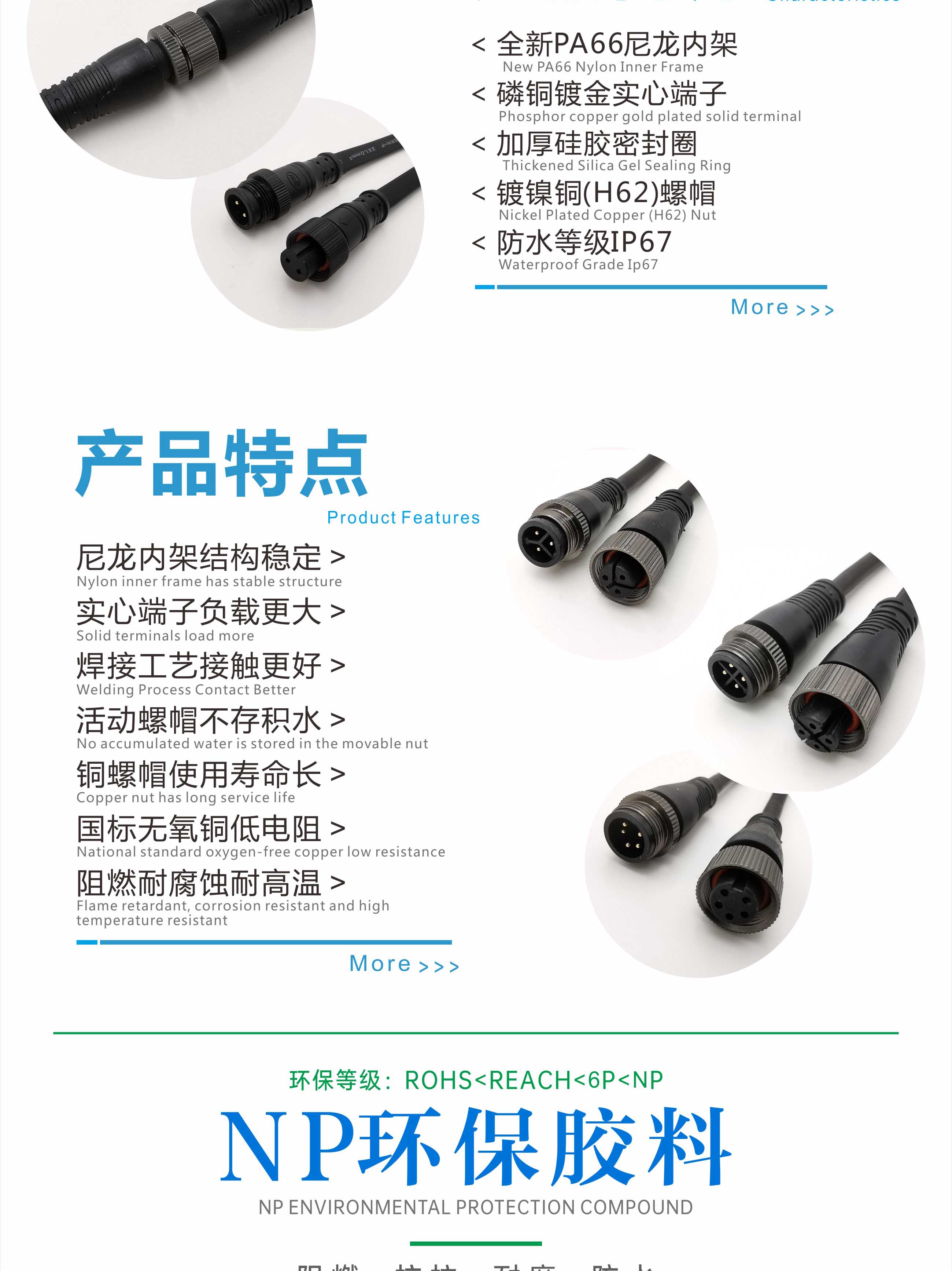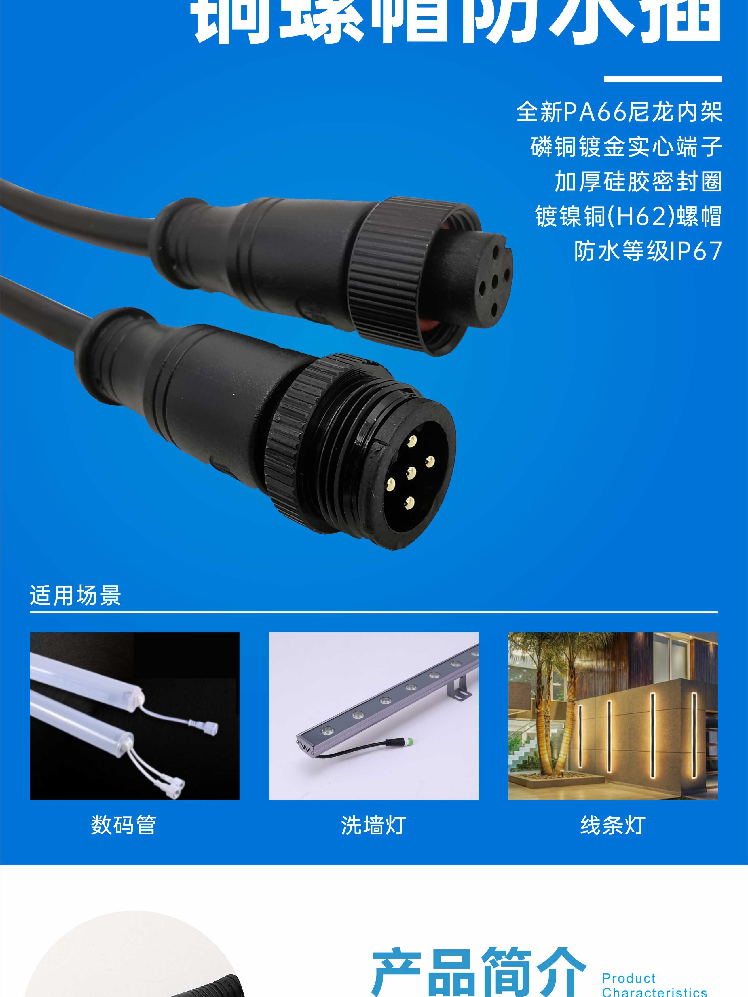 铜螺帽防水连接器防水公母插传感器连接线