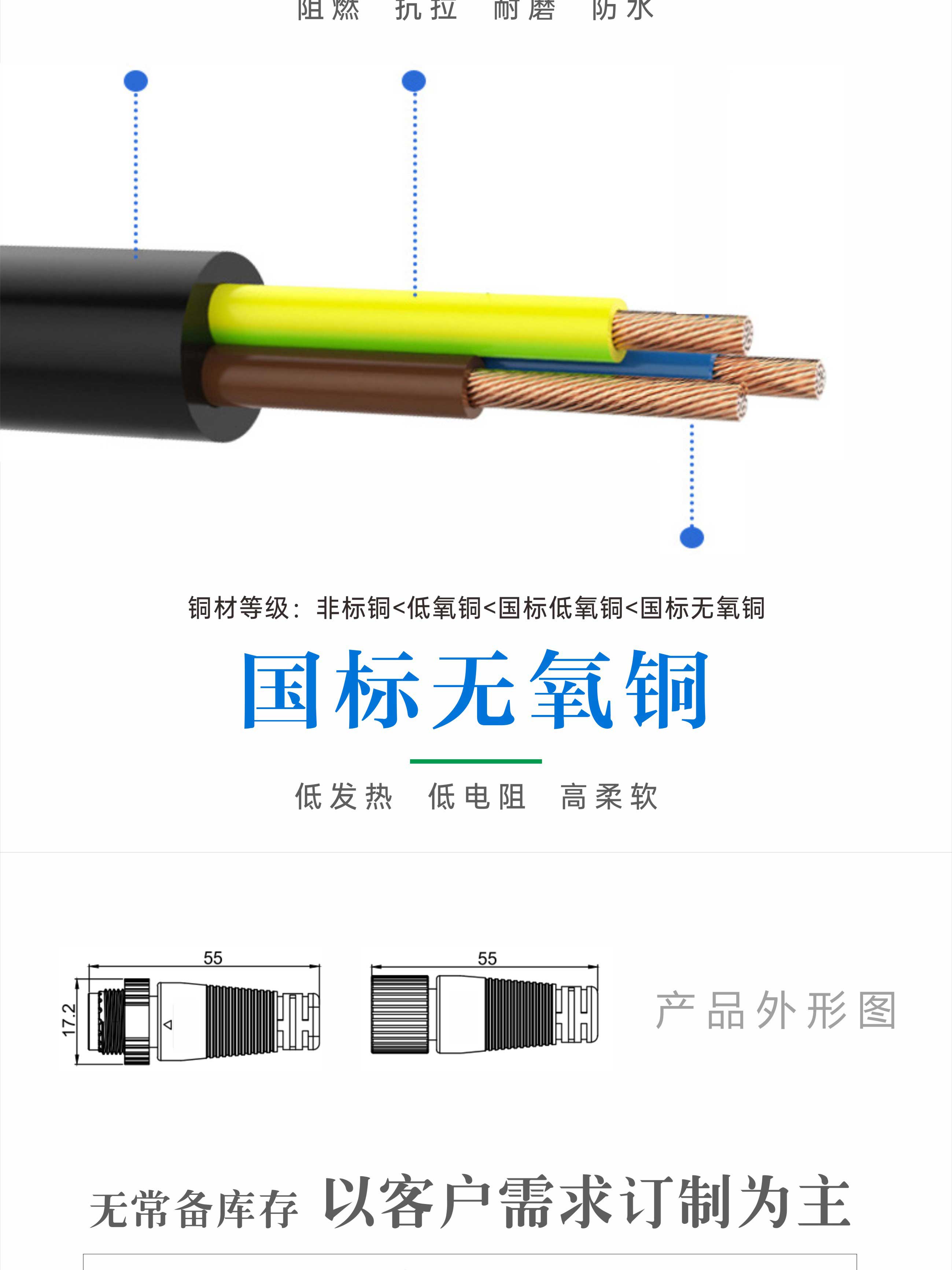 公司骨干力量从2007年起开始从事电子线加工生产,发展至今,已累积了丰富的生产及加工经验,目前本厂拥有拉线机、注塑机、全自动端子机、大型裁线机和电脑裁线机、扎线机等各类生产加工机器近百台,主要生产和加工电子线、护套线、橡胶线、高温线、AC插头线、DC插头线、防水插头线、线束、贴片端子等电器用线。线材可提供CCC、VDE、KC、SAA、PSE和UL认证。本厂始终贯彻用良“芯”,做好线的原则,遵循“质量、速度、服务”的经营理念,坚守底线,诚信待人现已累积了以珠三角为主,覆盖全国及其他部分国家的大量长期稳定客户,是诸多电源控制器、照明及电器企业值得信赖的优质配件供应商。为适应市场,满足广大客商的需求,还可代客开模,共同开发各类新的线材类产品,并协助客户制定产品布线方案,欢迎各大商家垂询、治谈,亦可前来门市及工厂实地考察指导。