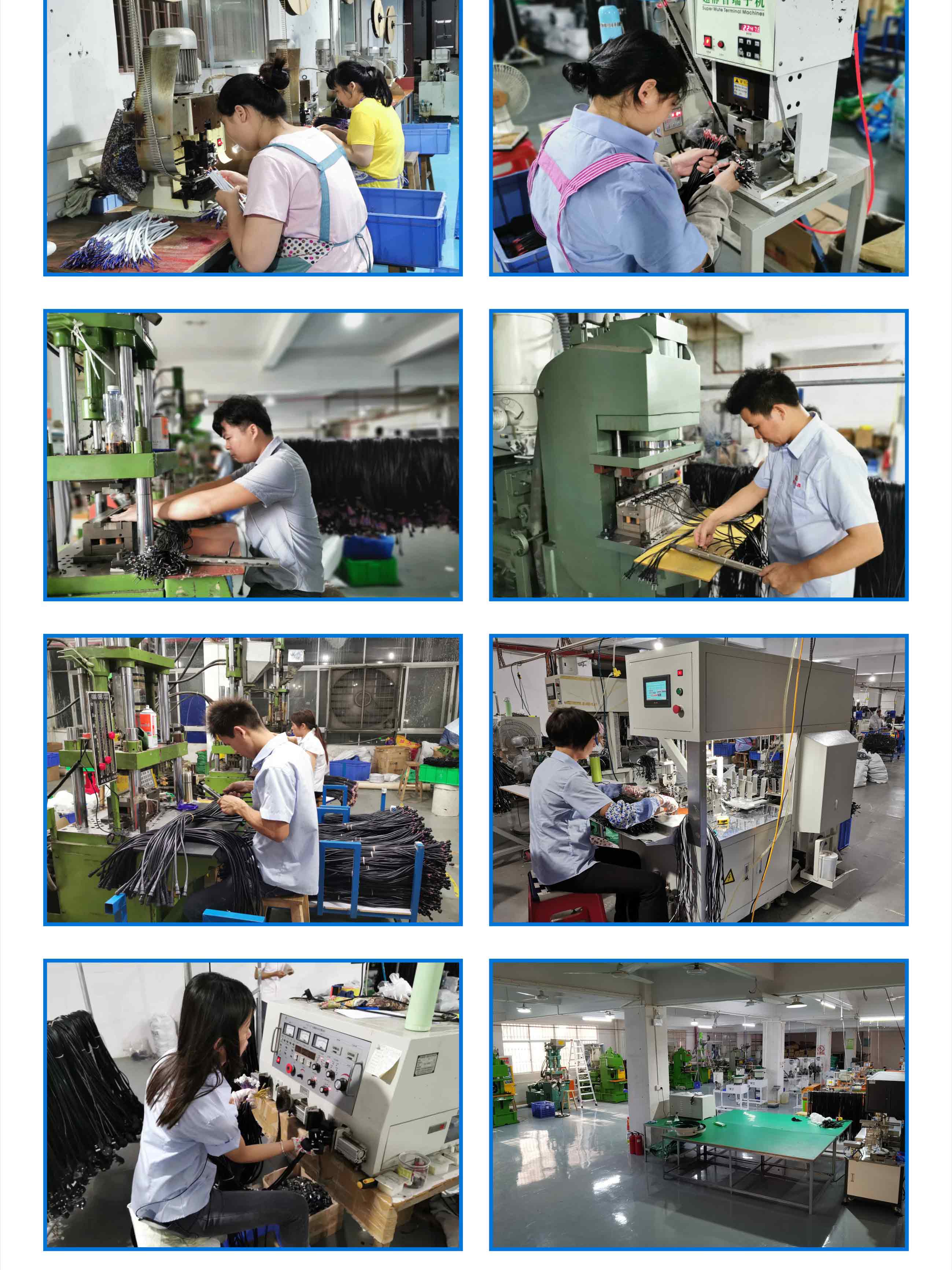 公司骨干力量从2007年起开始从事电子线加工生产,发展至今,已累积了丰富的生产及加工经验,目前本厂拥有拉线机、注塑机、全自动端子机、大型裁线机和电脑裁线机、扎线机等各类生产加工机器近百台,主要生产和加工电子线、护套线、橡胶线、高温线、AC插头线、DC插头线、防水插头线、线束、贴片端子等电器用线。线材可提供CCC、VDE、KC、SAA、PSE和UL认证。本厂始终贯彻用良“芯”,做好线的原则,遵循“质量、速度、服务”的经营理念,坚守底线,诚信待人现已累积了以珠三角为主,覆盖全国及其他部分国家的大量长期稳定客户,是诸多电源控制器、照明及电器企业值得信赖的优质配件供应商。为适应市场,满足广大客商的需求,还可代客开模,共同开发各类新的线材类产品,并协助客户制定产品布线方案,欢迎各大商家垂询、治谈,亦可前来门市及工厂实地考察指导。