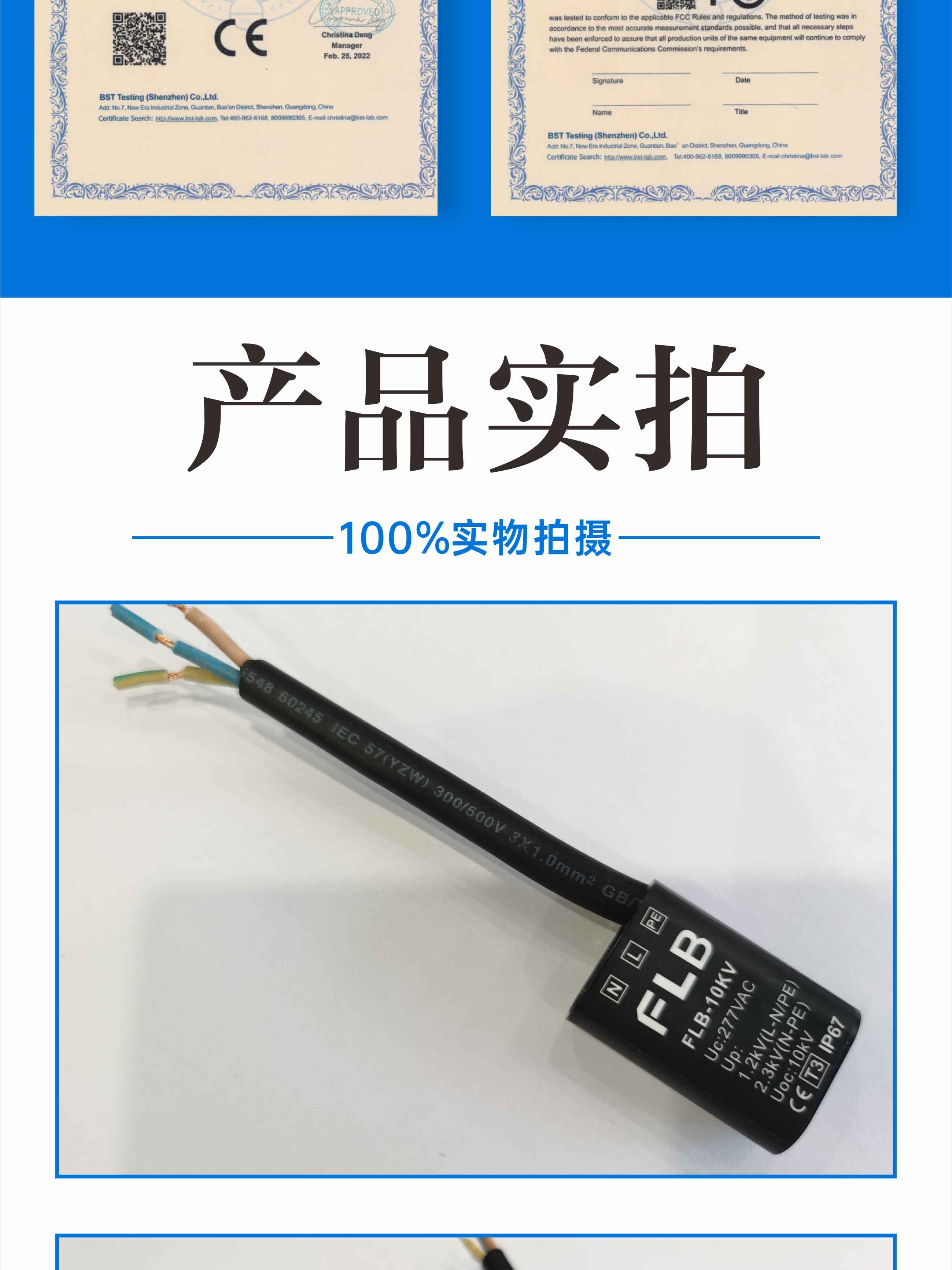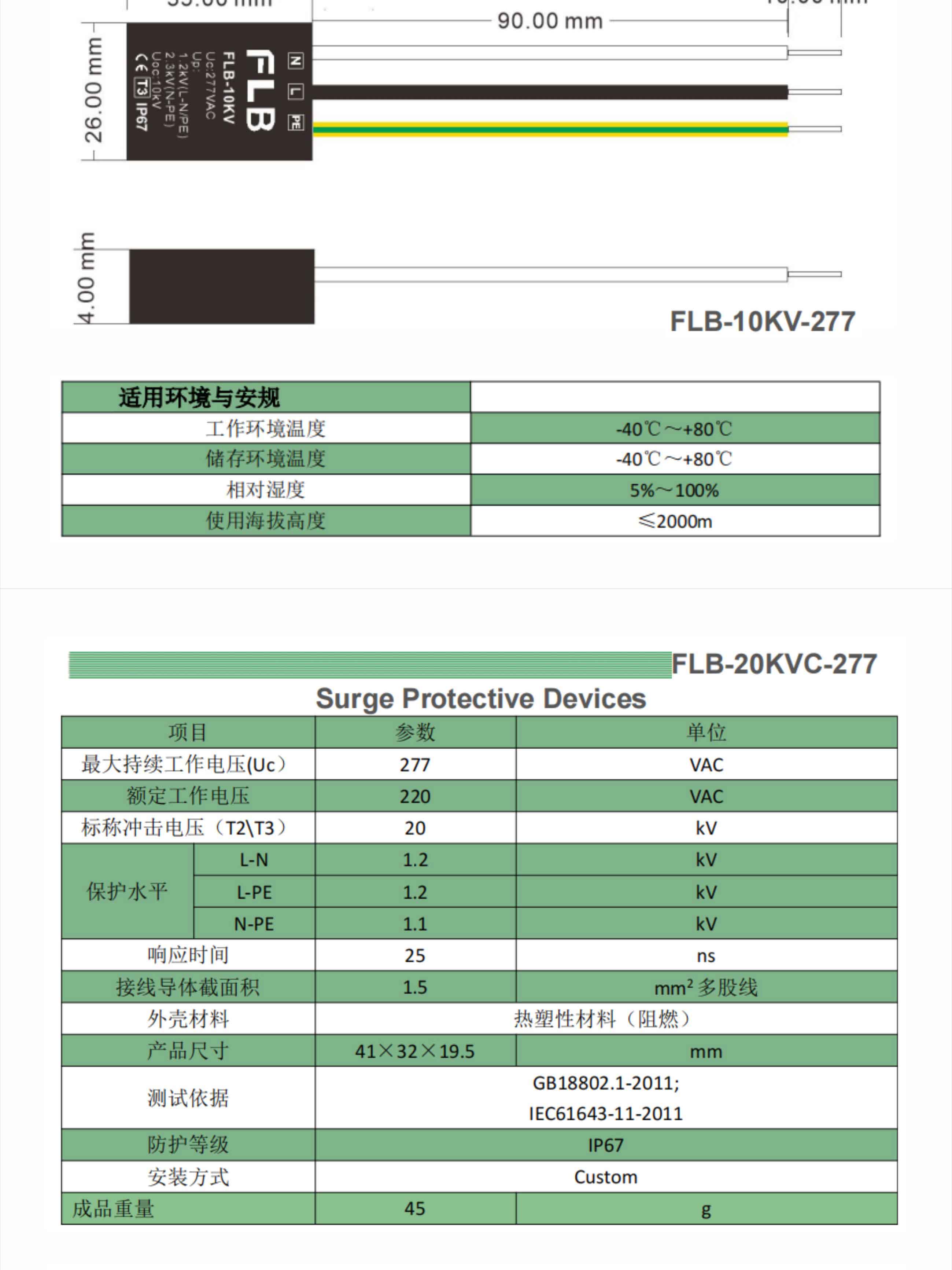 电涌保护器升级版 路灯LED防雷器连接器多国认证10/20K
