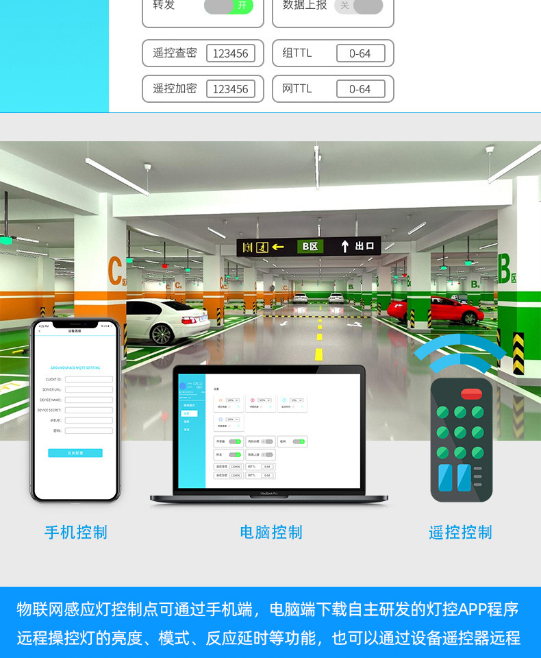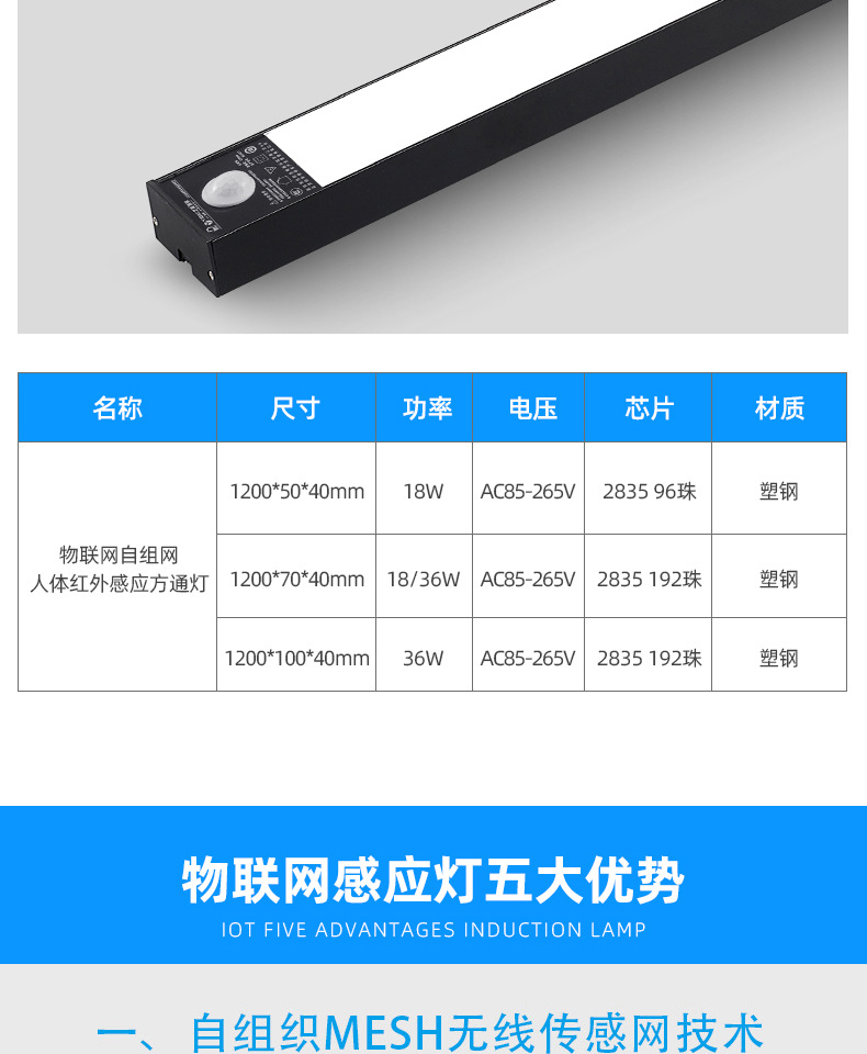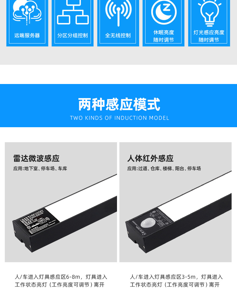 雷达感应车库灯自组网可遥控APP控制LED一体化红外感应