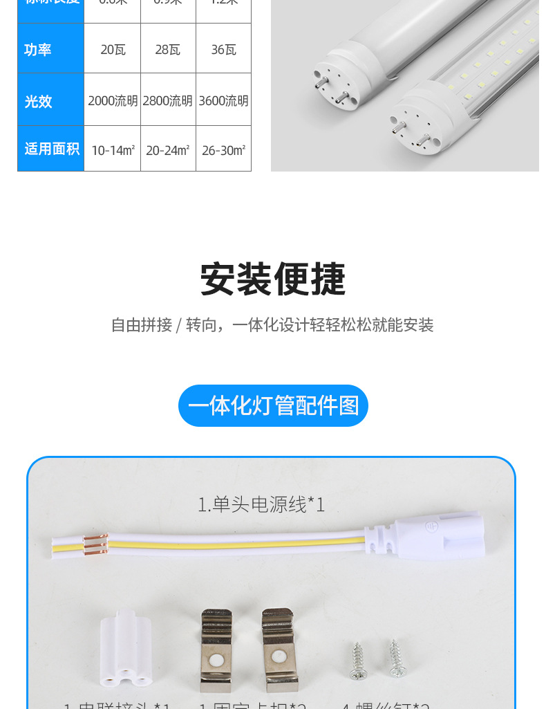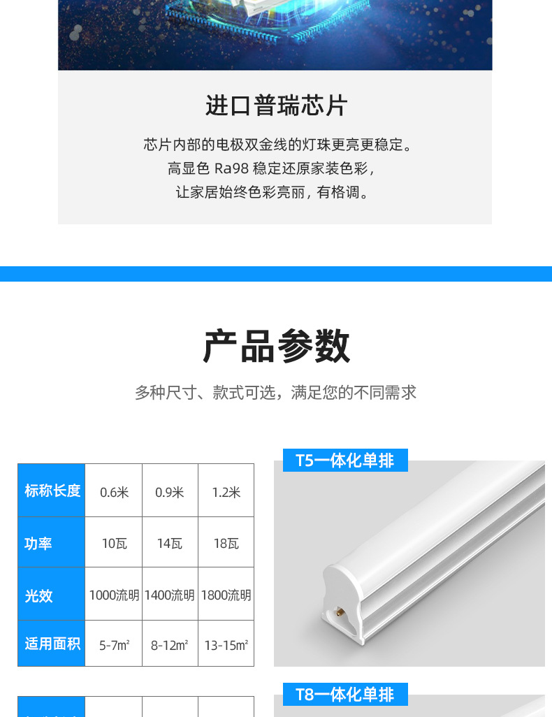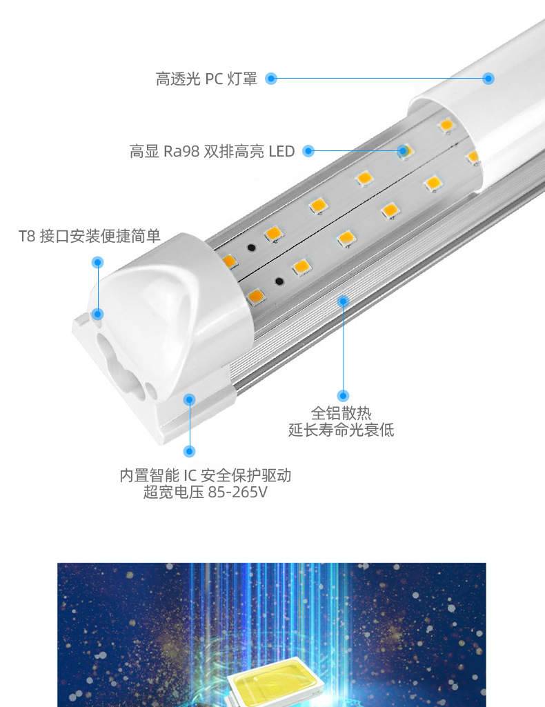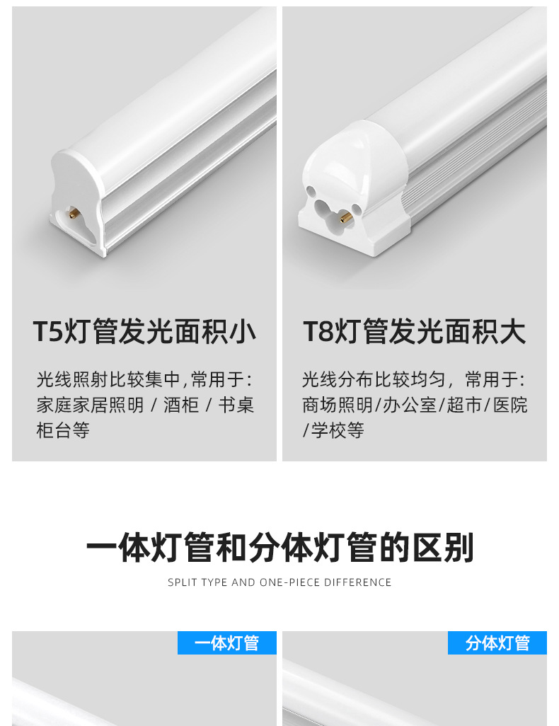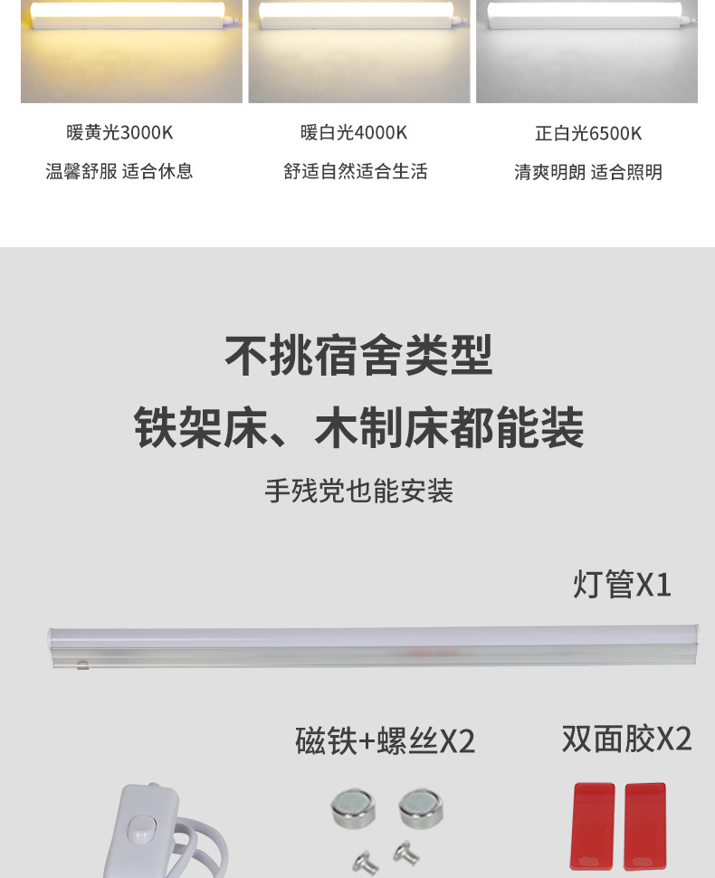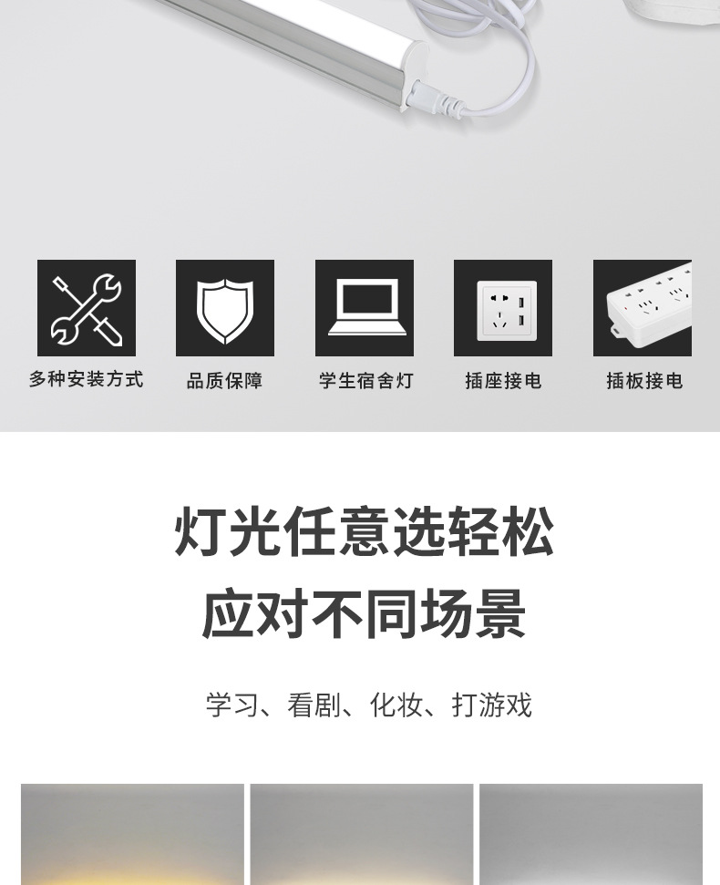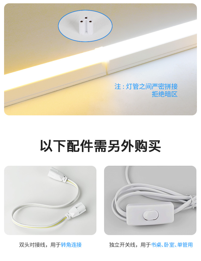T5一体化led灯管双面粘贴插线式学生节 能LED灯
