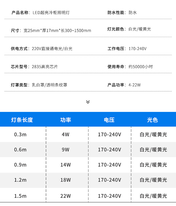 led防水灯管冰柜立式冷柜灯管LED日光灯保鲜柜冰箱生鲜灯