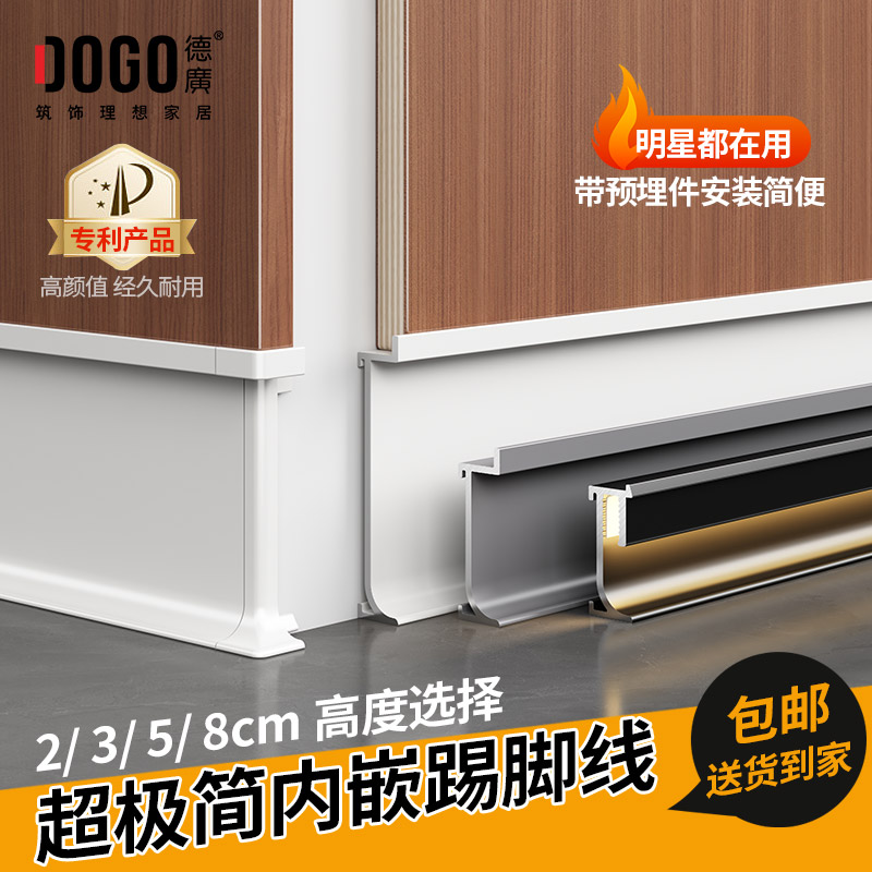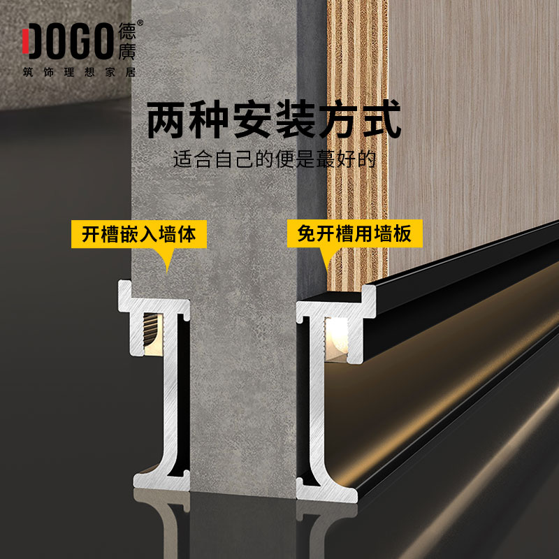 内嵌踢脚线搭配墙板墙面开槽下发光铝合金灯带踢脚线TNT