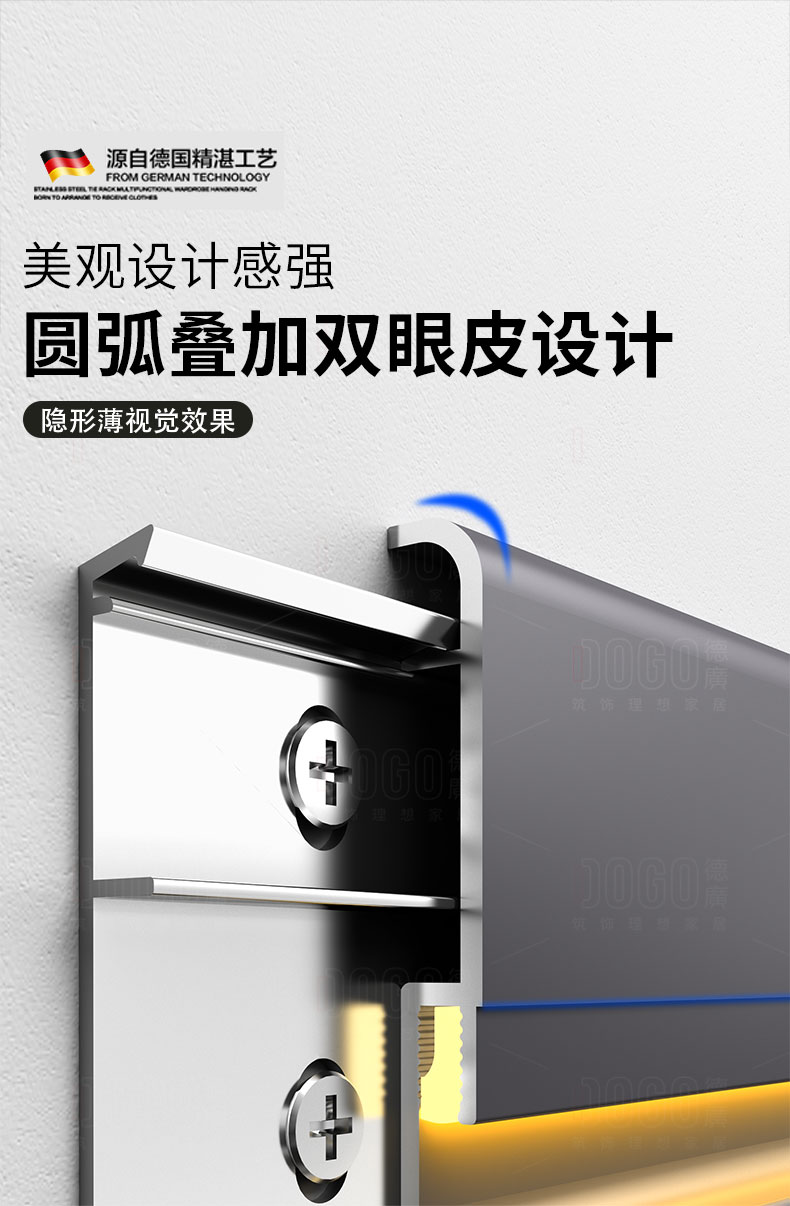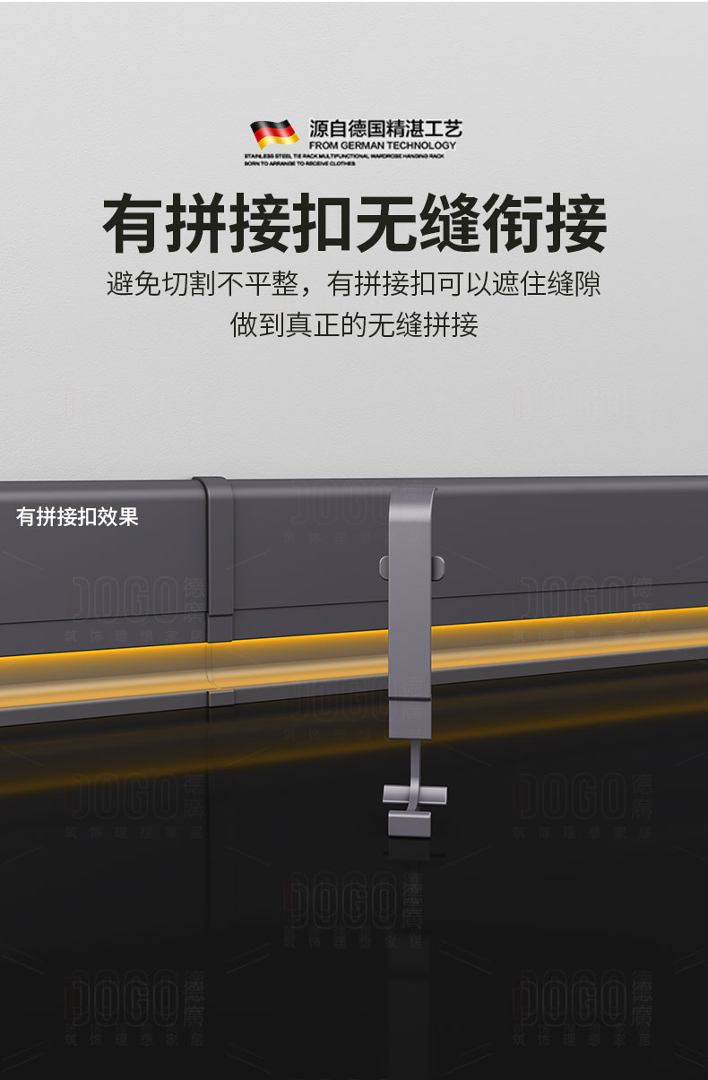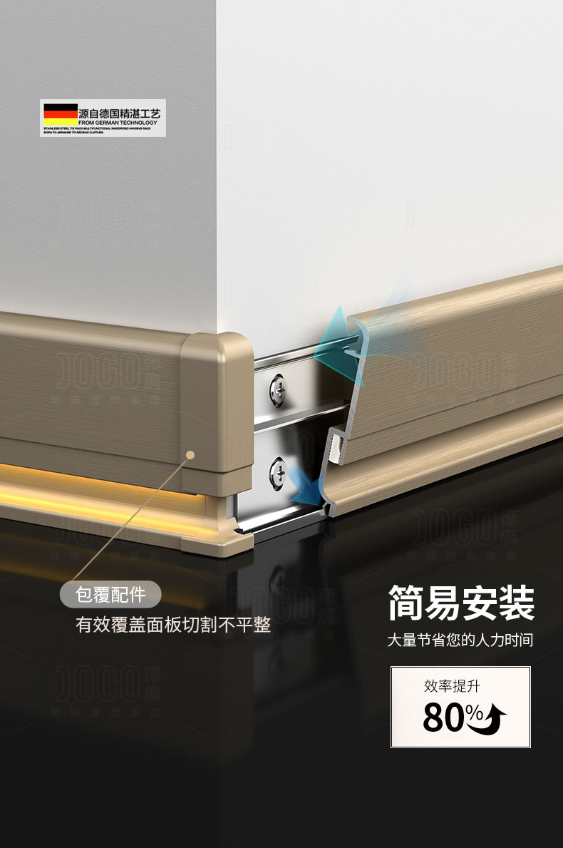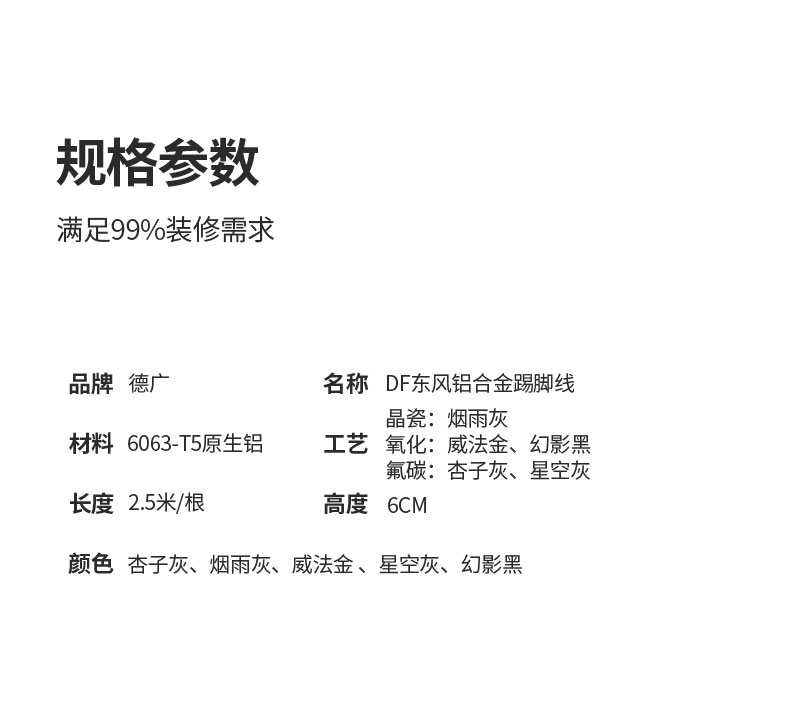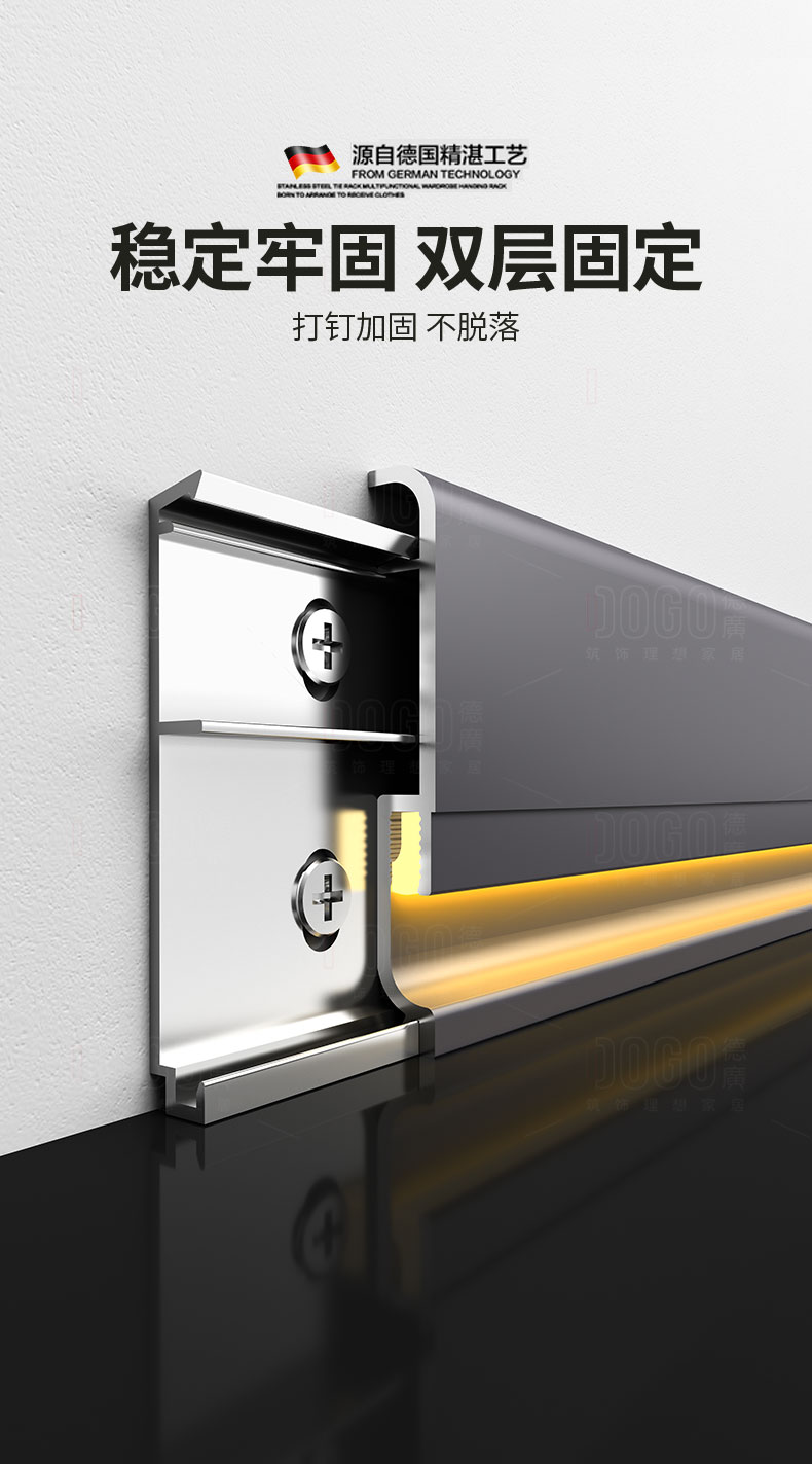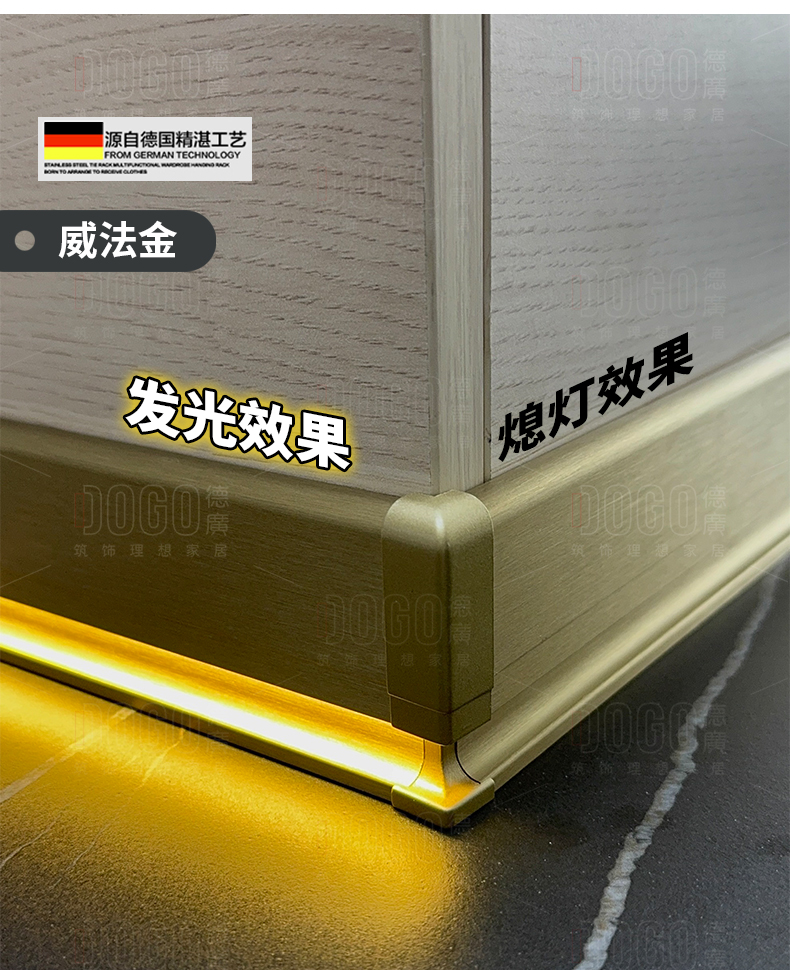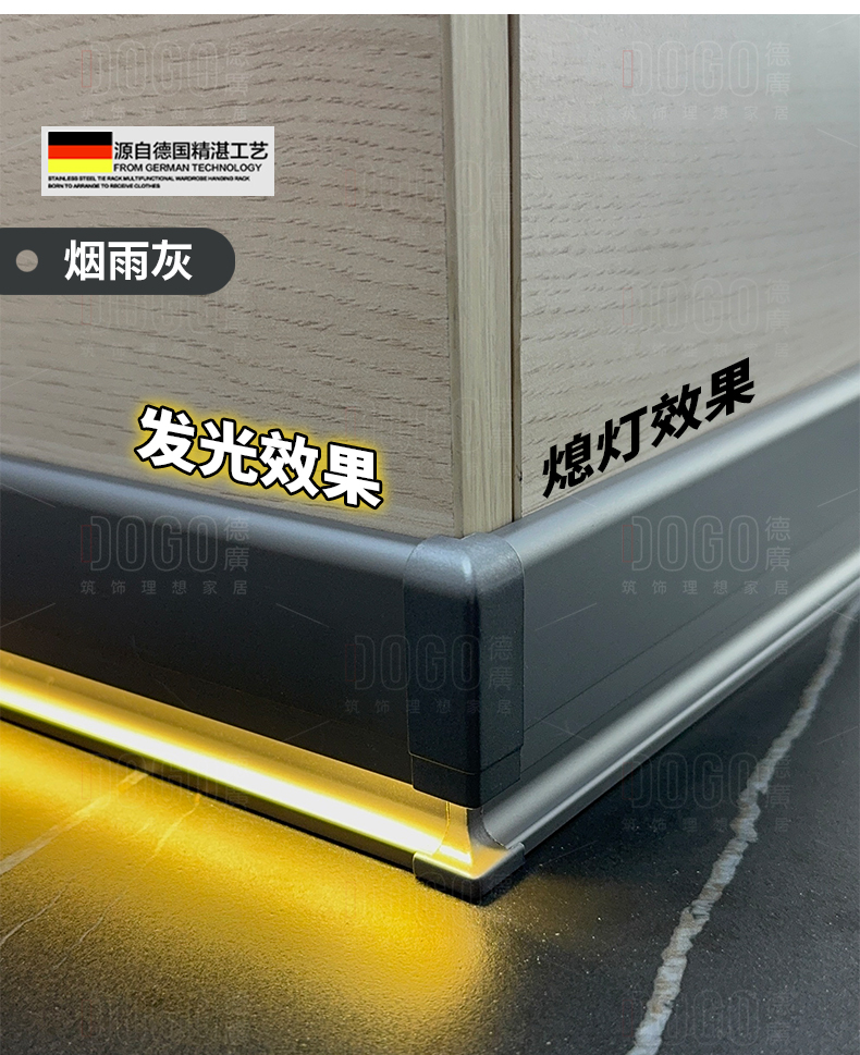 德广——全品类发光踢脚线领创者德广铝业坐落于中国铝材之都·佛山,专注于铝合金全品类踢脚线及装饰发光线条领域。我们以“光与金属的融合”为设计原点,率先构建起行业内品类齐全的发光踢脚线矩阵——向上发光、正面发光、向下发光、明装发光、内嵌发光……全场景覆盖,满足不同空间与安装需求。不止于踢脚线,我们将光的艺术延伸至天花,推出发光天花线系列,让光从脚下蔓延至头顶,打造一体化光影空间。大部分款式采用硅胶灯罩透光设计,光线柔和不刺眼,见光不见灯,兼顾视觉舒适与安装安全。我们始终保持高频率的产品迭代,持续推出具有创新力的发光产品,不断拓宽铝合金线条的边界。德广以佛山制造的精工底蕴,为设计师、工程方及家居用户提供“够全、够新、够柔光”的发光线条解决方案。德广铝合金线条 · 让光有型,让家有温