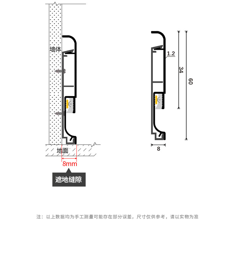 铝合金卡扣发光踢脚线下发光硅胶透光DF