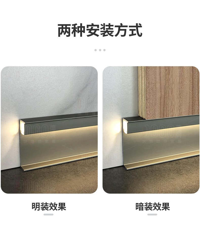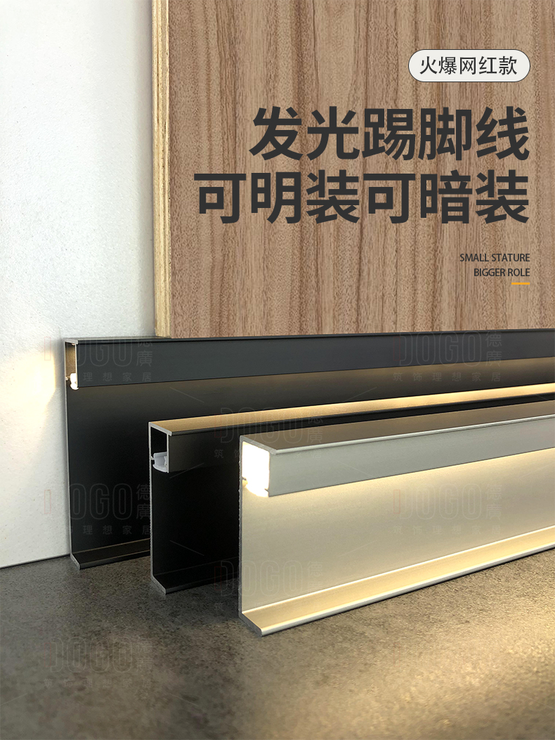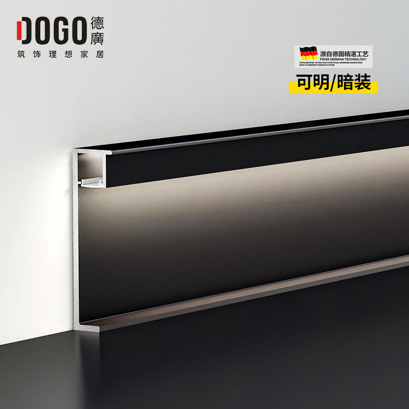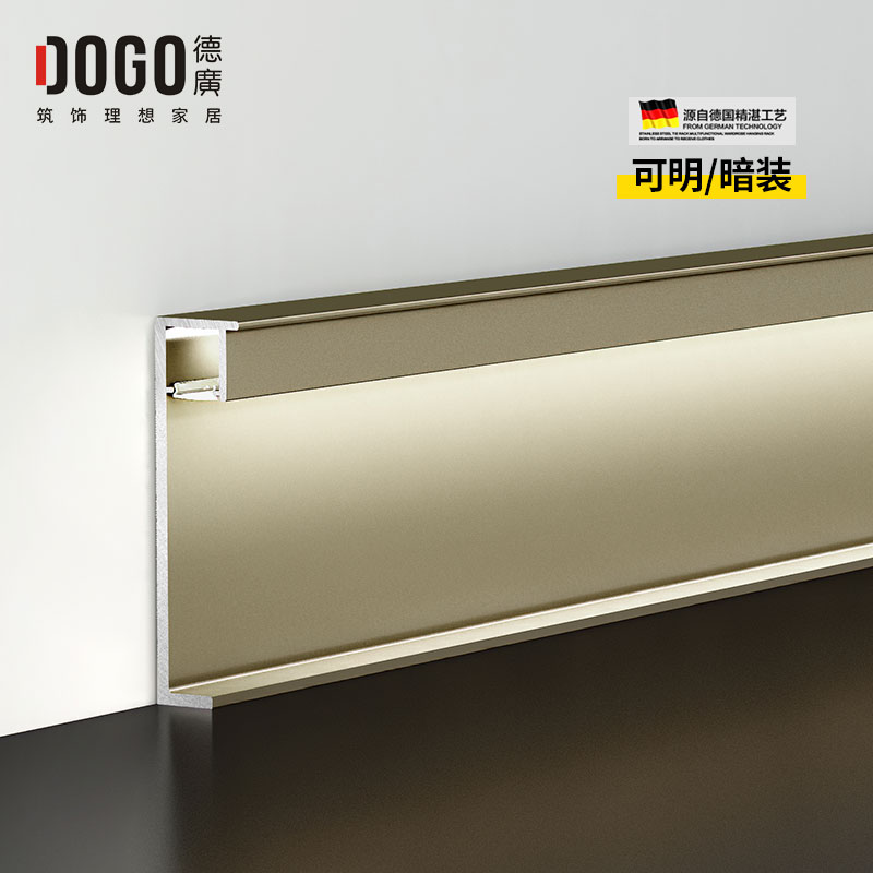 德广——全品类发光踢脚线领创者德广铝业坐落于中国铝材之都·佛山,专注于铝合金全品类踢脚线及装饰发光线条领域。我们以“光与金属的融合”为设计原点,率先构建起行业内品类齐全的发光踢脚线矩阵——向上发光、正面发光、向下发光、明装发光、内嵌发光……全场景覆盖,满足不同空间与安装需求。不止于踢脚线,我们将光的艺术延伸至天花,推出发光天花线系列,让光从脚下蔓延至头顶,打造一体化光影空间。大部分款式采用硅胶灯罩透光设计,光线柔和不刺眼,见光不见灯,兼顾视觉舒适与安装安全。我们始终保持高频率的产品迭代,持续推出具有创新力的发光产品,不断拓宽铝合金线条的边界。德广以佛山制造的精工底蕴,为设计师、工程方及家居用户提供“够全、够新、够柔光”的发光线条解决方案。德广铝合金线条 · 让光有型,让家有温