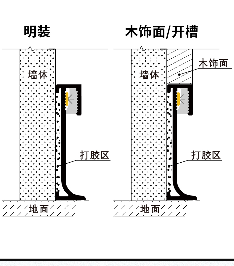 明装/内嵌下发光铝合金踢脚线MTV系列
