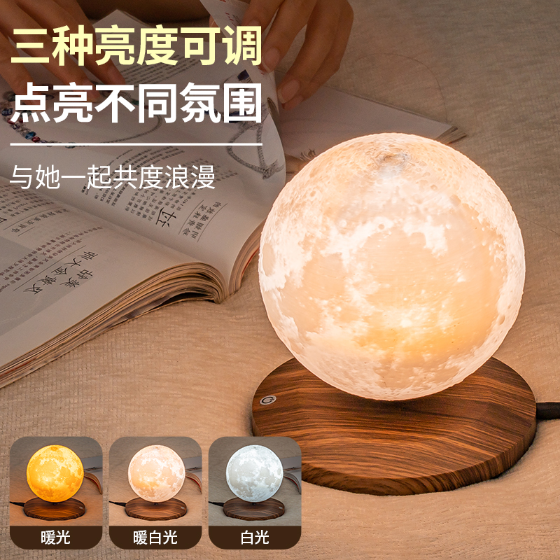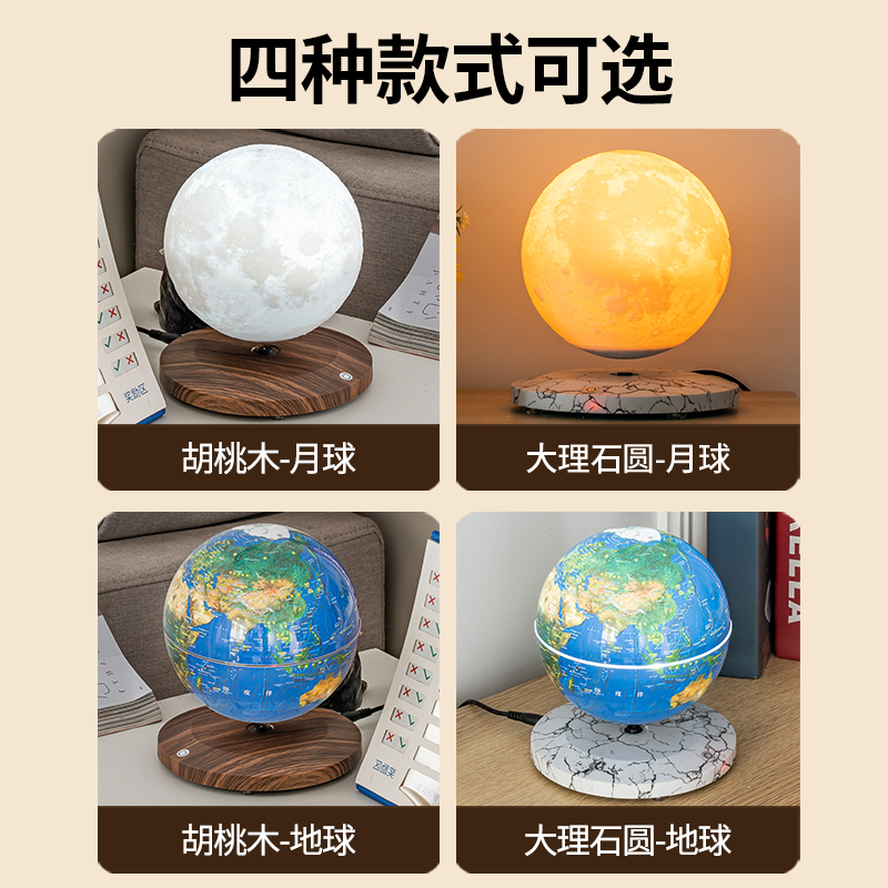 磁悬浮自动升降月球地球仪小夜灯卧室床头台灯礼物高级感气氛围