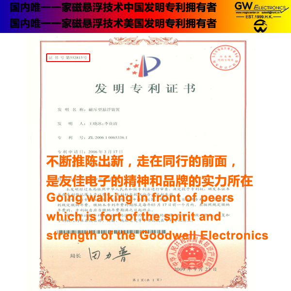 早在2006年就获得了磁悬浮装置发明专利成功并获得证书