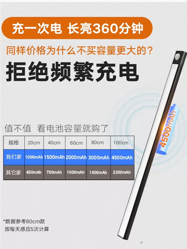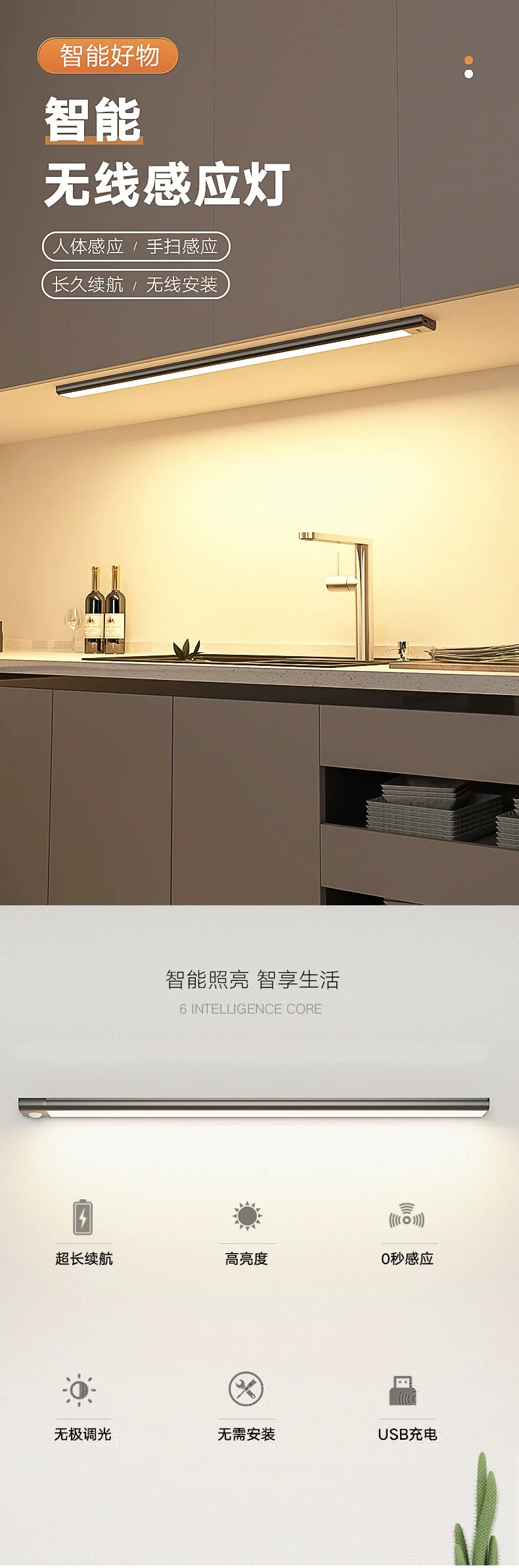 智能人体感应灯条无线自粘橱柜灯充电led灯鞋柜酒柜衣柜磁吸灯