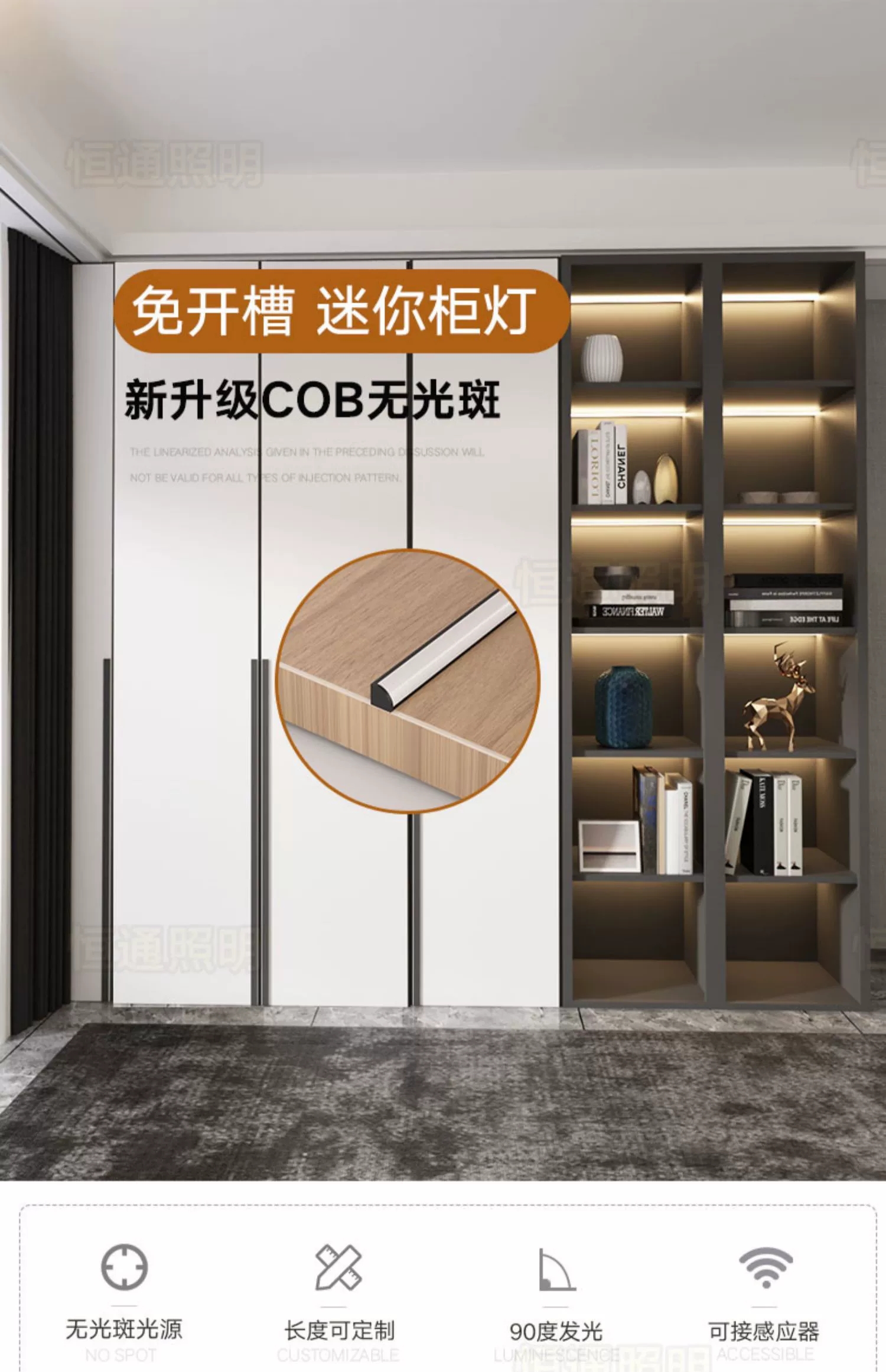 免开槽层板灯明装直角led灯条厨房柜子酒柜鞋柜衣柜感应灯带家