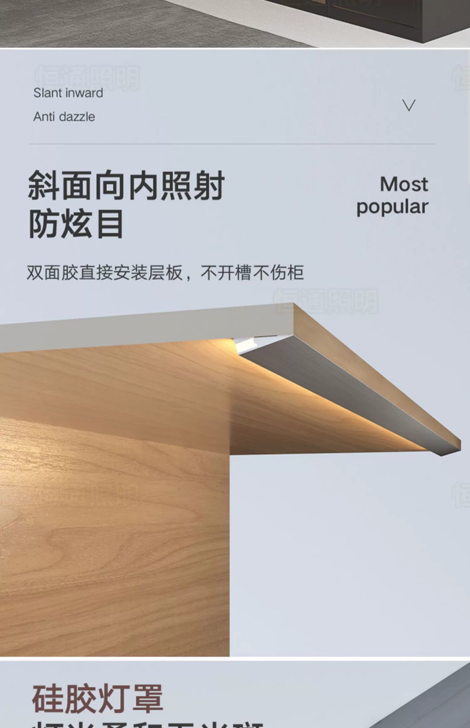 免开槽酒柜灯带嵌入式LED衣柜层板灯橱柜感应灯条明装柜子线条