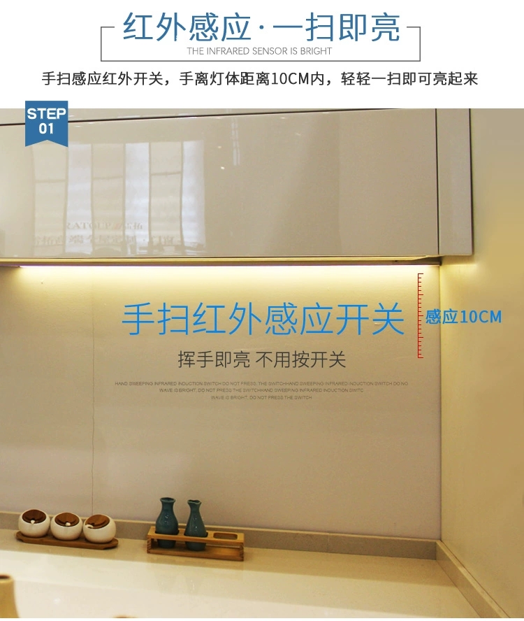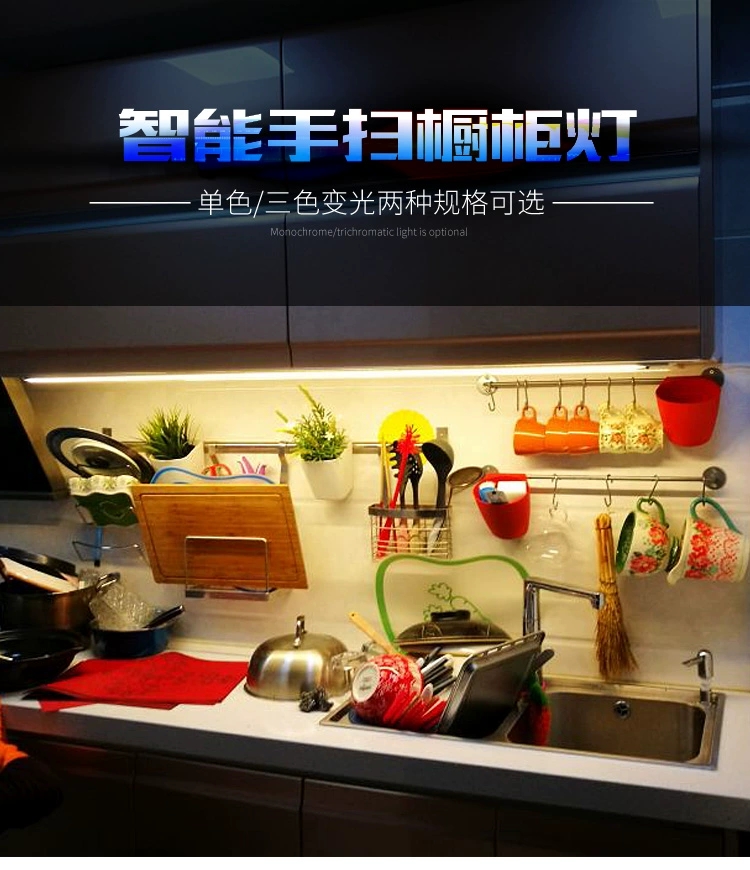 手扫厨房橱柜灯led柜底灯感应灯书桌灯镜柜灯读书灯三色变光灯