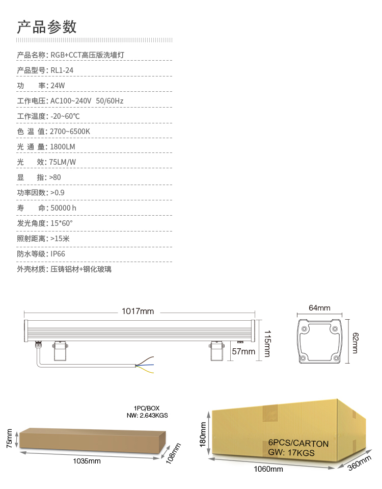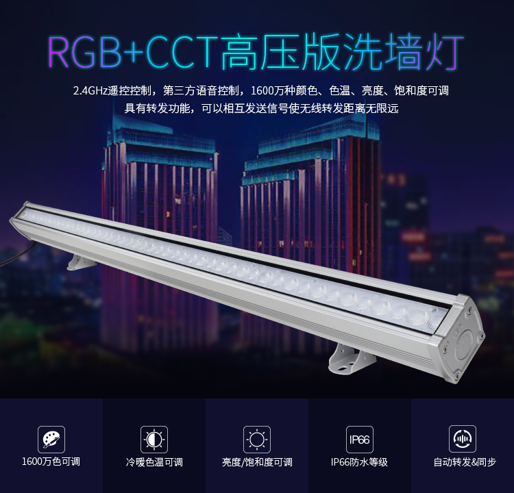 2.4G 24W RGBCCT无线遥控一米洗墙灯