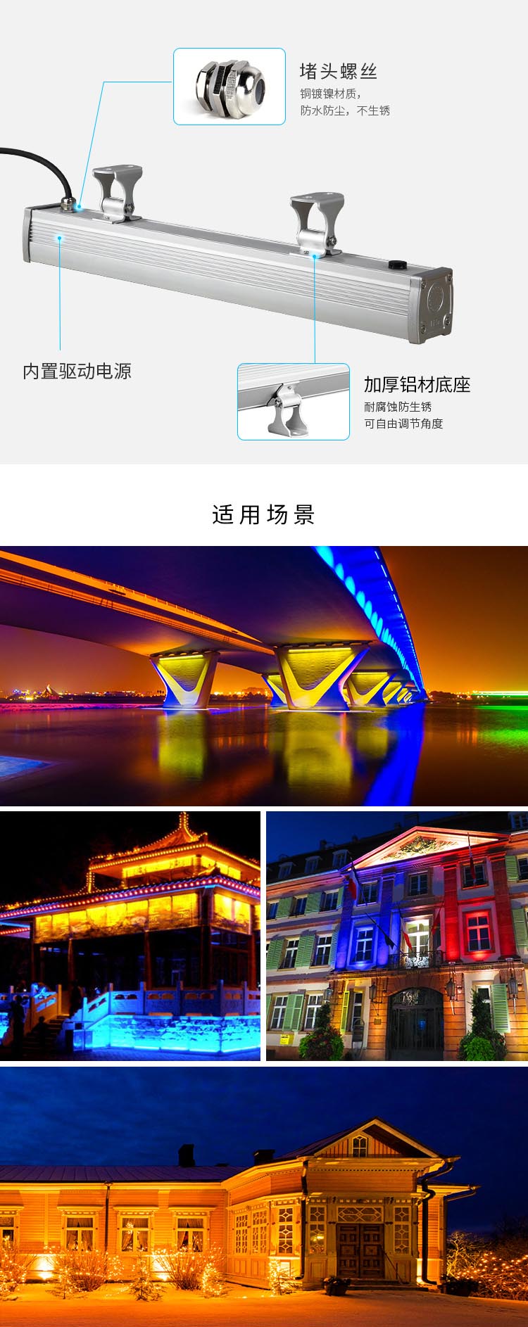 • 适用空间 桥梁、绿化景观、外墙、水体、商业街、园林、住宅、广场