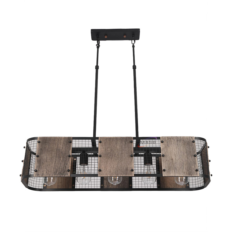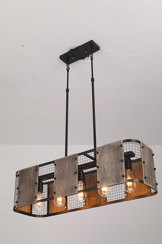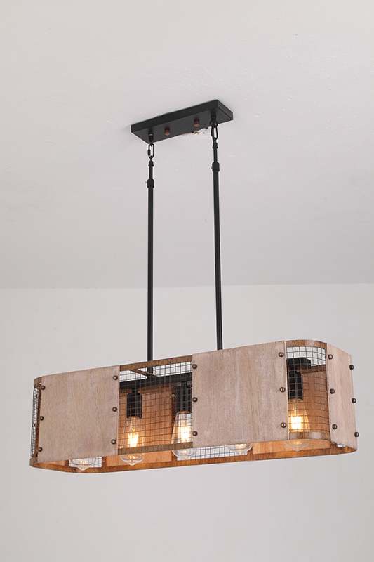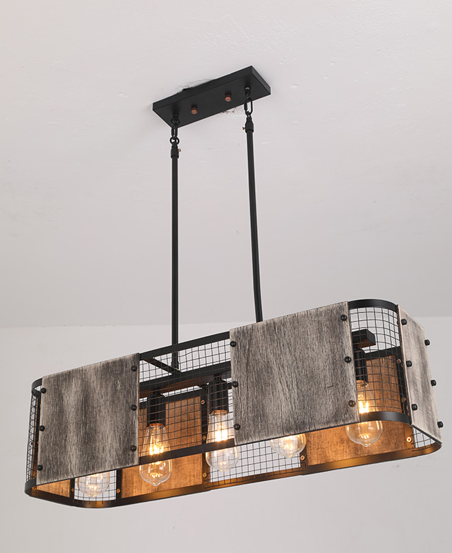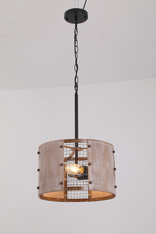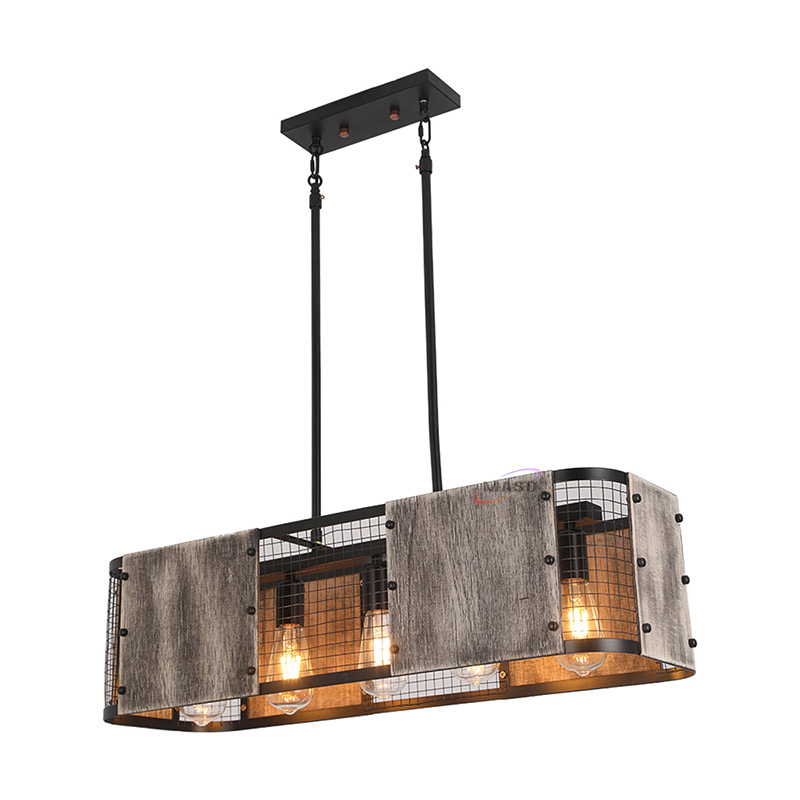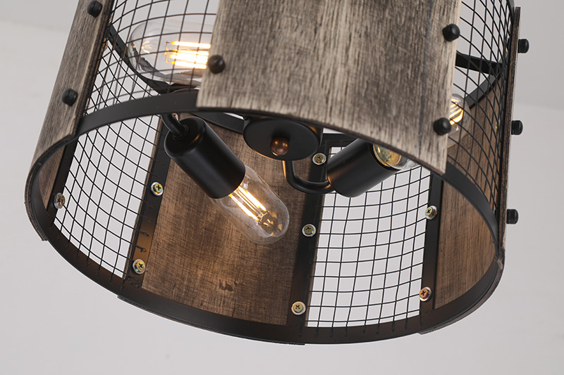 美式复古风格铁艺网格木片装饰个性酒吧餐厅吊灯