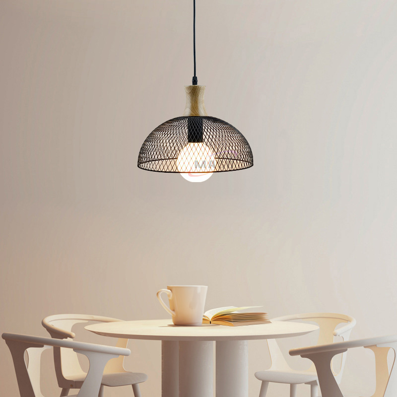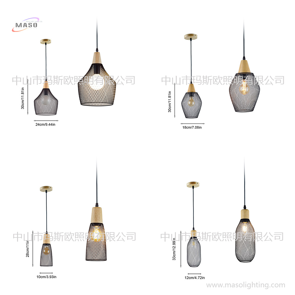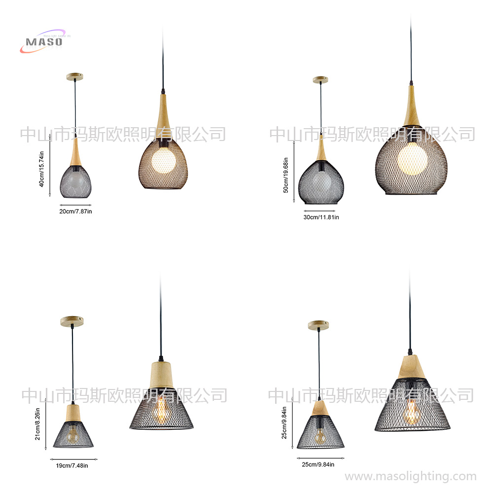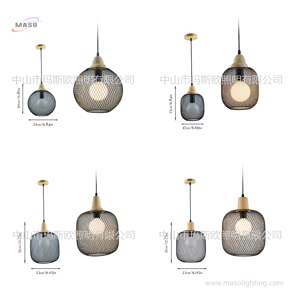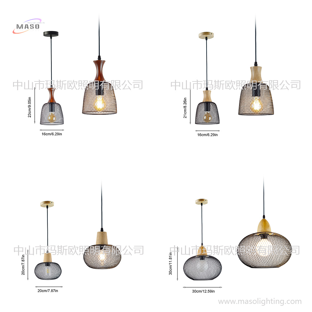 北欧现代木头装饰网状铁艺灯罩室内餐厅酒吧服装店吊灯