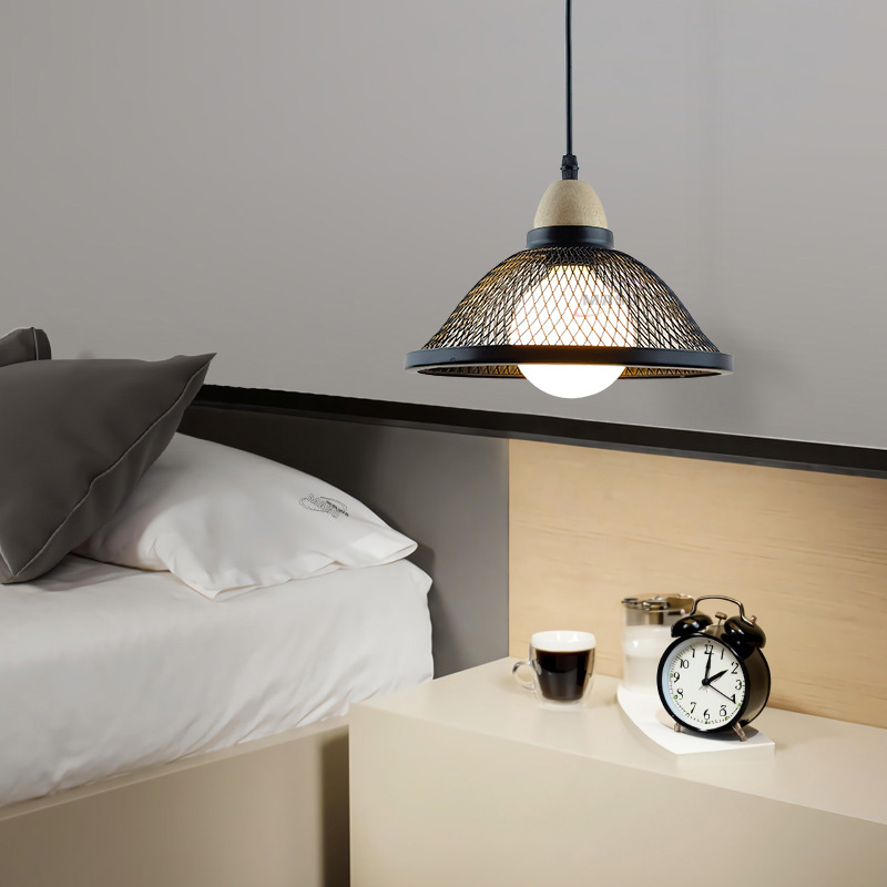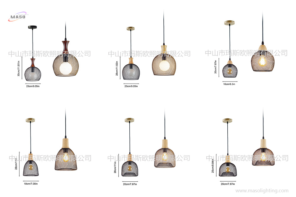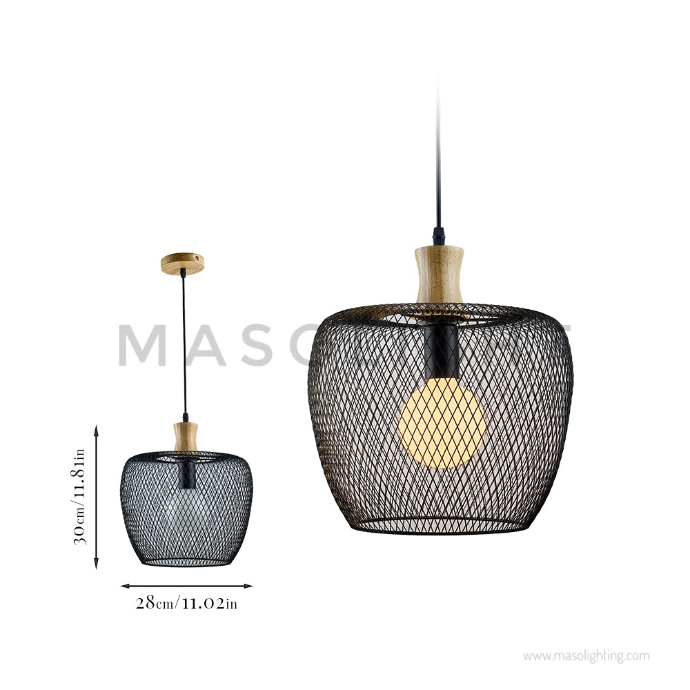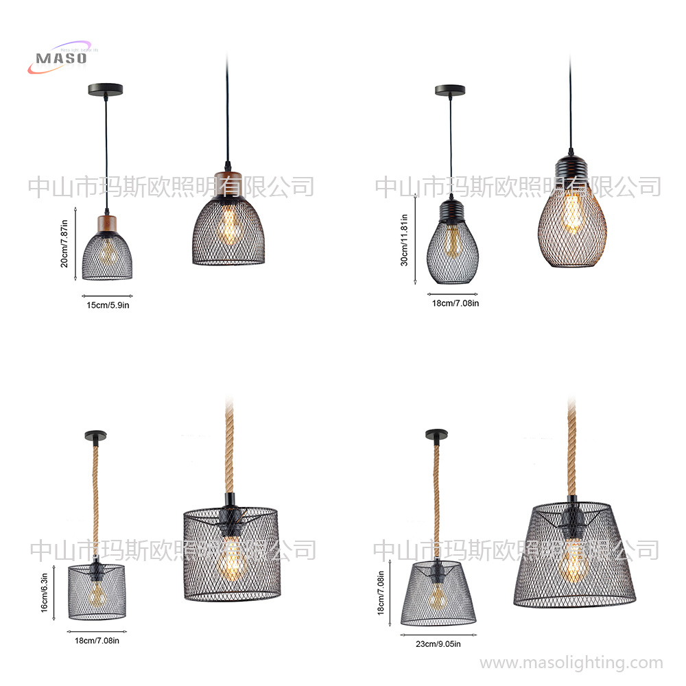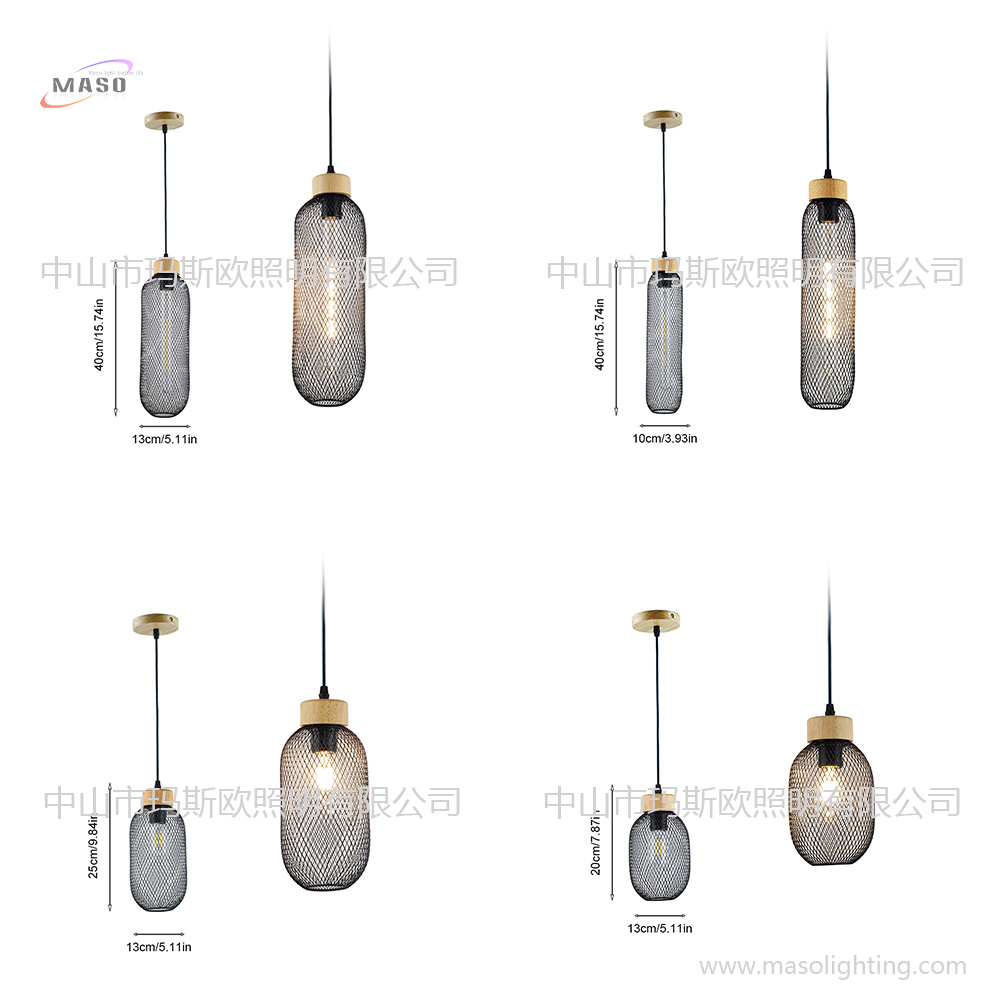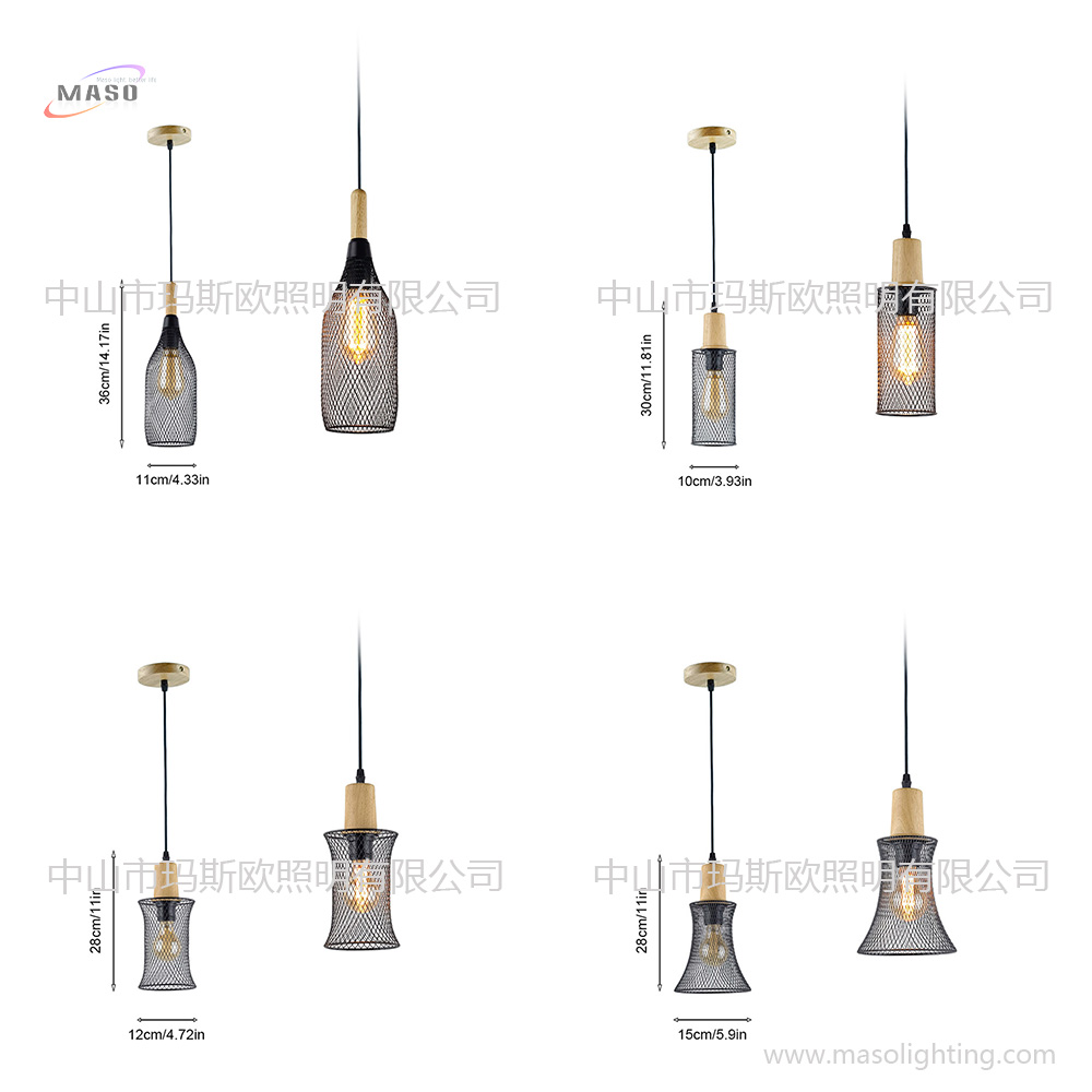 北欧现代木头装饰网状铁艺灯罩室内餐厅酒吧服装店吊灯
