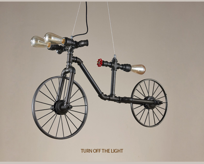 工业艺术自行车造型水管材质酒吧餐厅美规吊灯