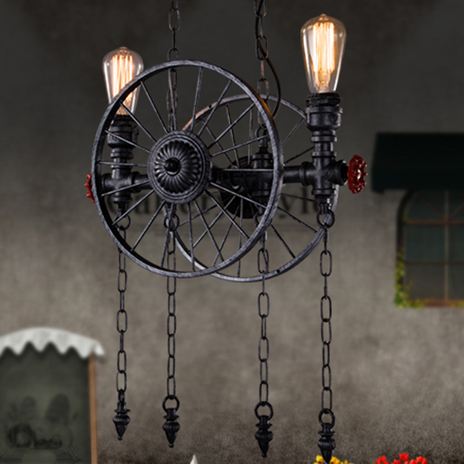 工业复古美式美规车轮水管餐厅饭馆服装店吊灯