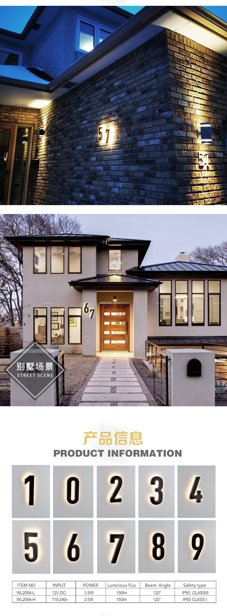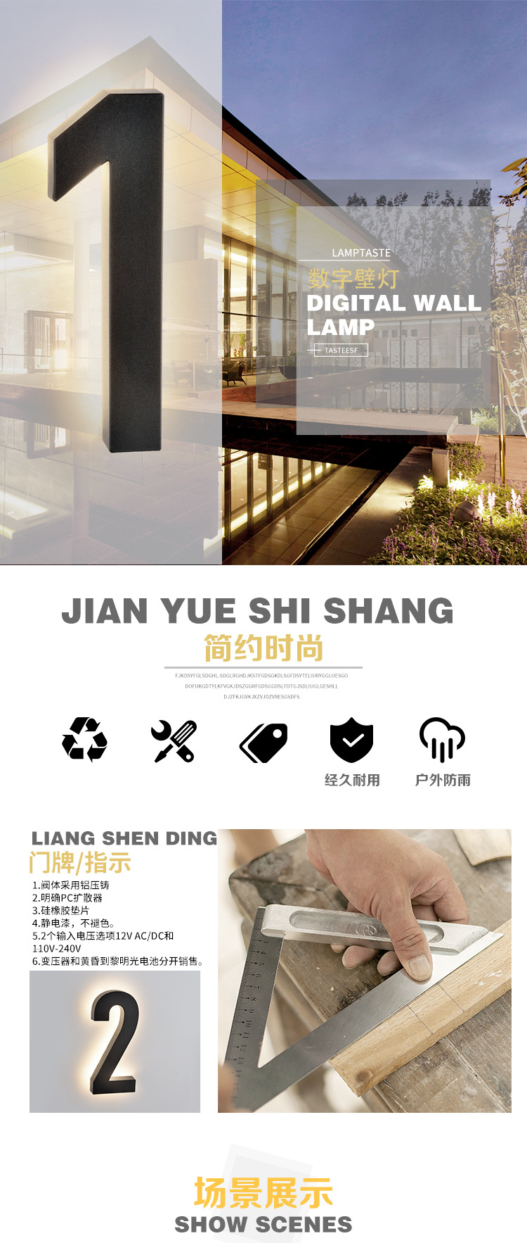 中屹厂家LED 数字灯门牌灯铝压铸灯庭院户外过道壁灯装饰灯