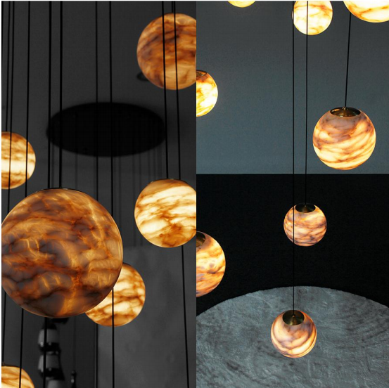 Waerte照明公司通常专注于生产和销售主要由天然西班牙雪花石制成的灯具和固定装置。我们通常将现代照明技术与传统的雪花石工艺相结合,创造出既美观又实用的照明产品。Waerte照明因其独特的雪花石纹理和奢华的外观而在高端市场受到青睐,常用于酒店、住宅、大型别墅和豪华俱乐部的装饰。