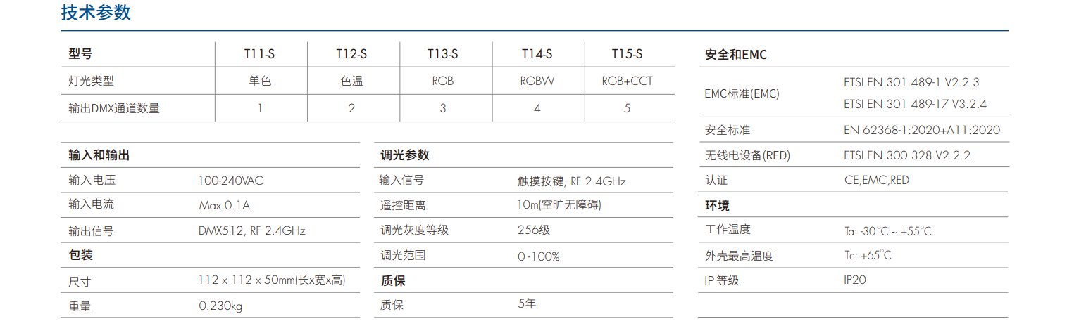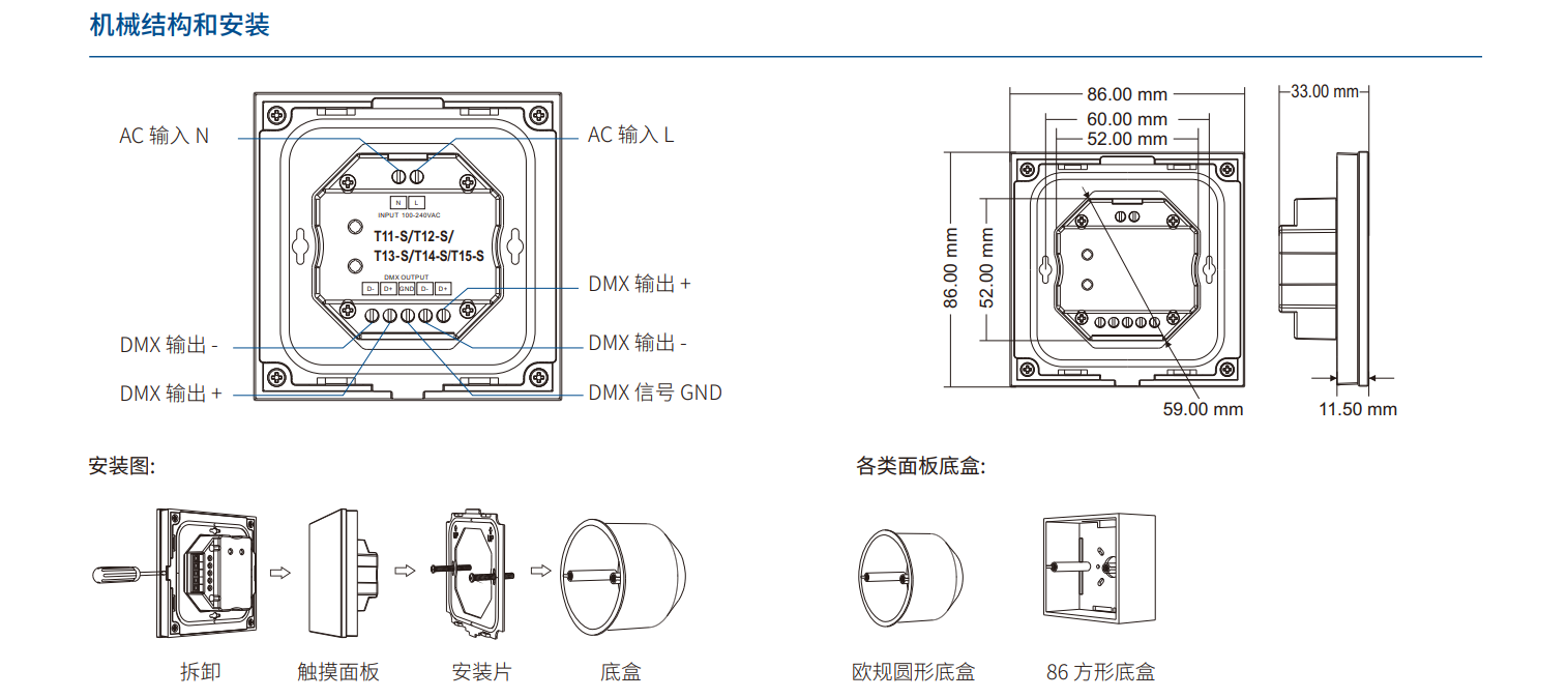单区 AC100-240V DMX主控触摸面板 T12-S
