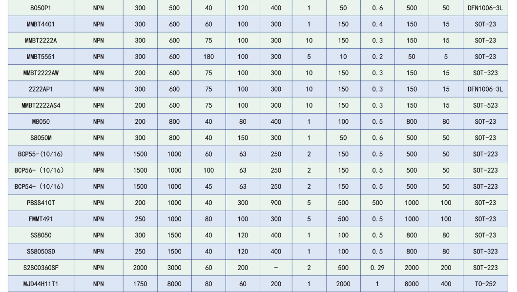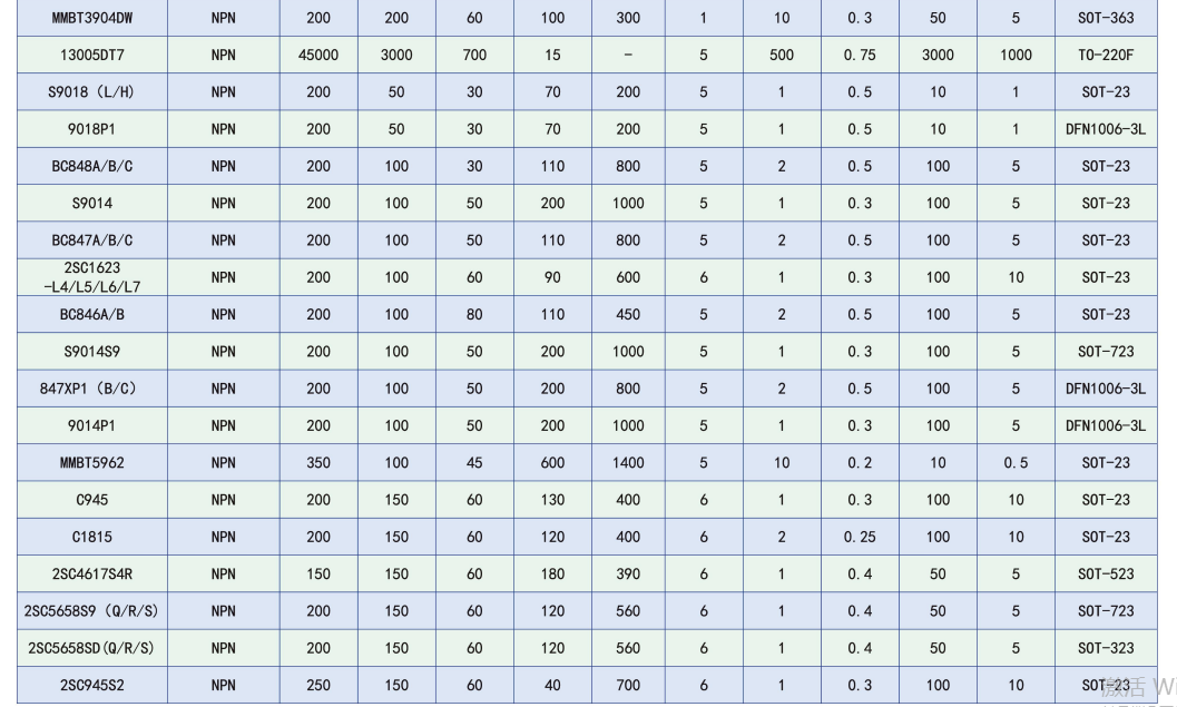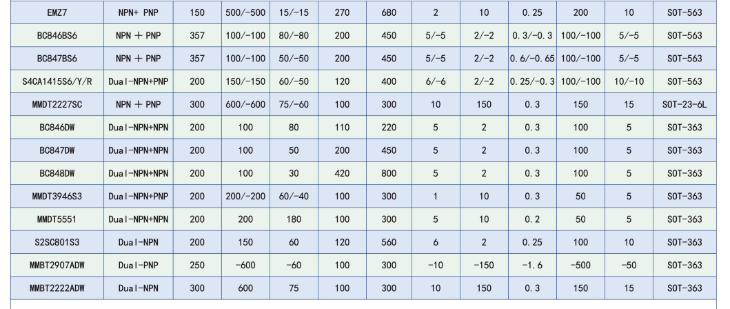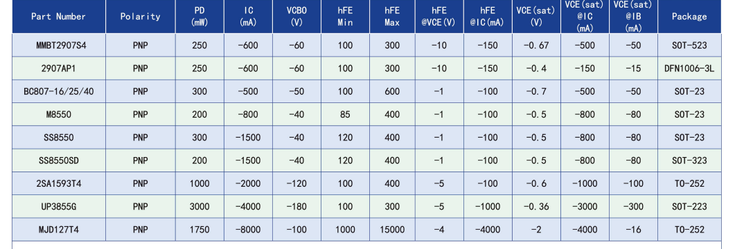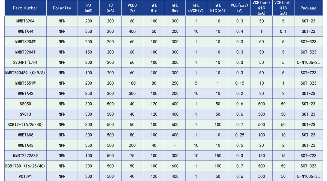 拥有系列化的小信号BJT产品,产品封装丰富,型号齐全,11个封装,120多款产品,满足不同应用场景需求。