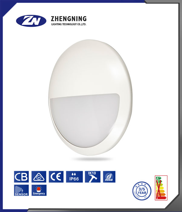 这是正宁照明科技有限公司(ZHENGNING LIGHTING TECHNOLOGY CO., LTD.)生产的灯具。 该灯具整体呈椭圆形,边框为黑色,外观简洁大方。从下方标识可知,它通过了CB、CE等认证;防护等级达到IP66,具备出色的防尘防水能力;抗冲击等级为IK10,能承受较强冲击;符合RoHS标准,较为环保;提供3年的质保期限,且从能效标识来看,能效等级表现较好。
