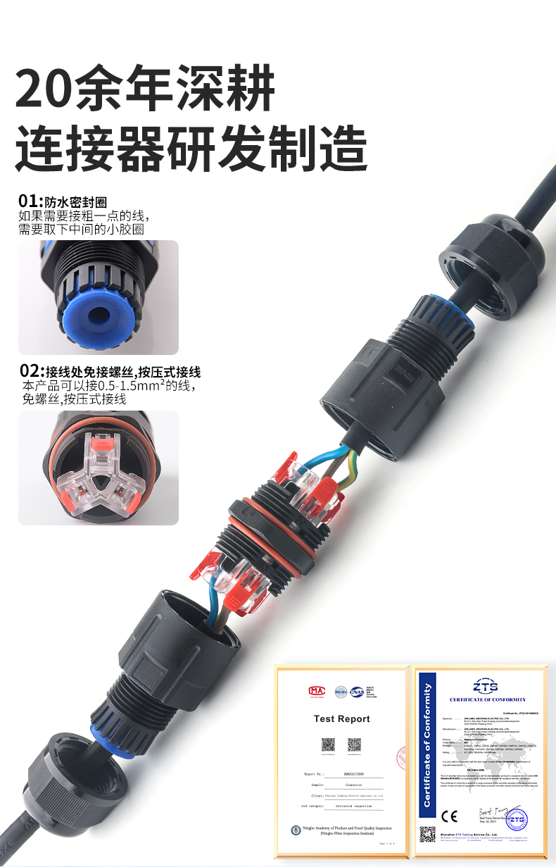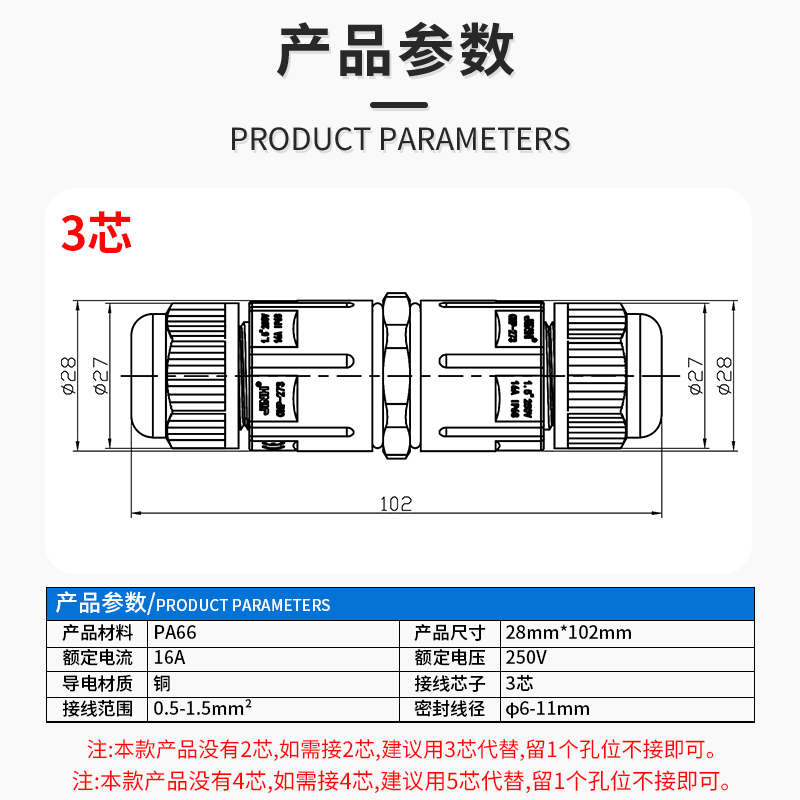 CNP29系列三芯五芯防水连接器快接式防水接头IP68