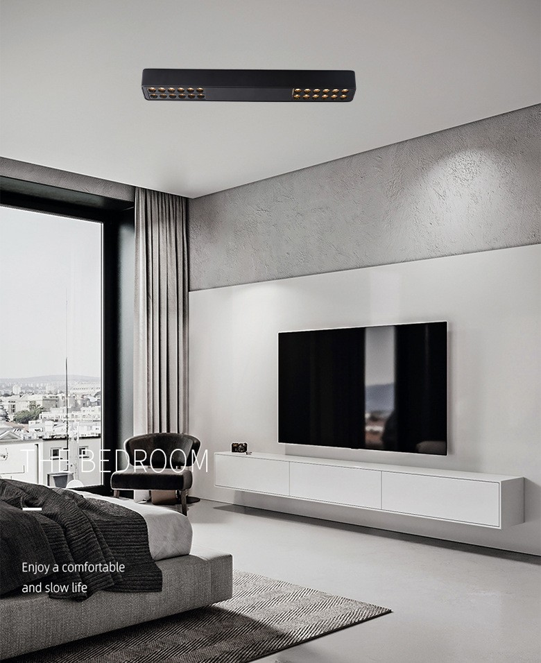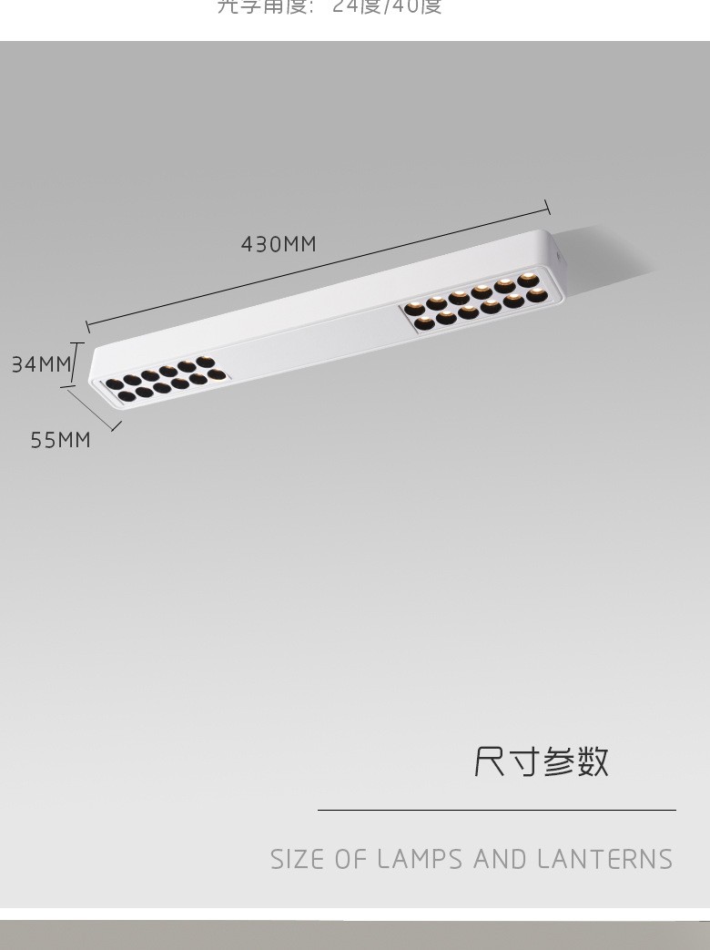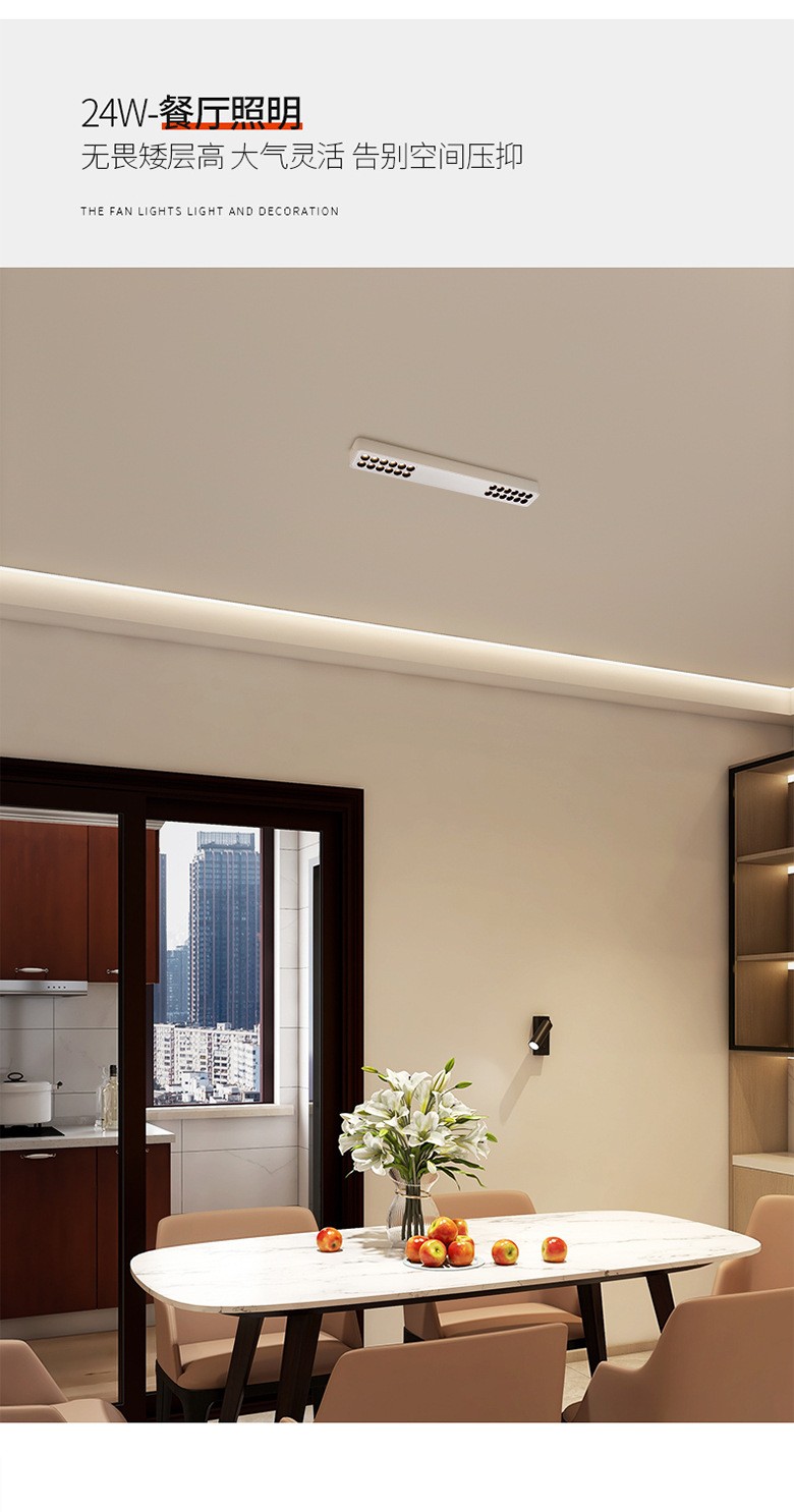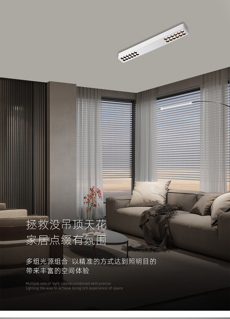明装射灯无主灯长条客厅阳台餐桌灯极简LED格栅射灯 免开孔长