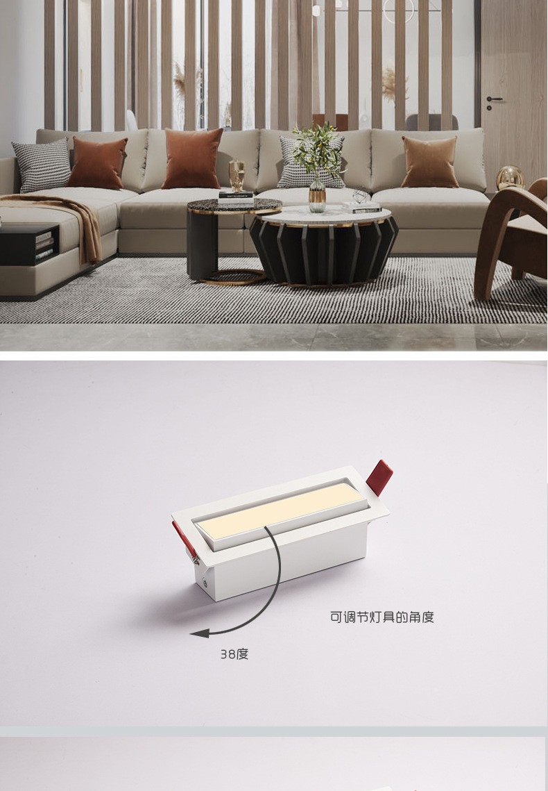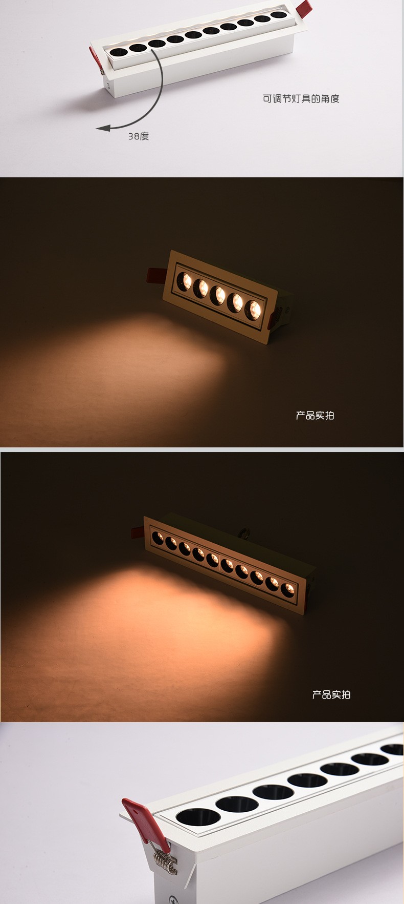 LED嵌入式长条线条灯开孔射灯筒灯摇头无订灯防眩防玄光过道灯