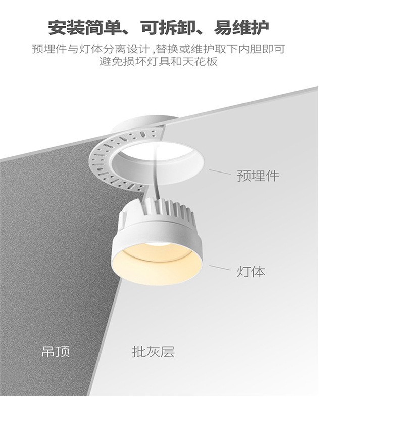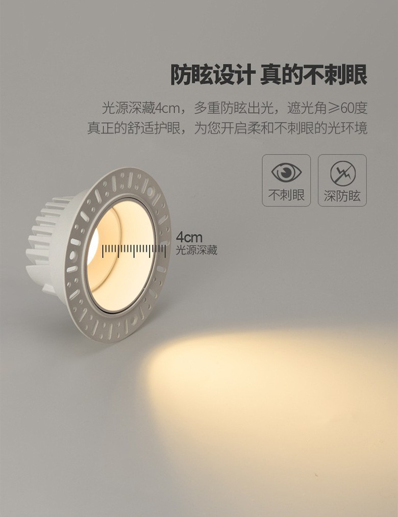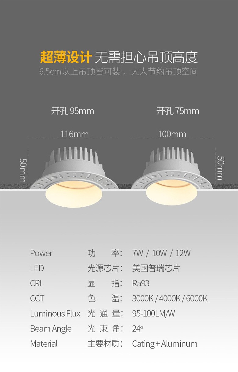 led无边框射灯家用嵌入式天花灯预埋式酒开孔75店射灯7w1