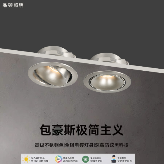 嵌入式超溥射灯包豪斯筒灯电镀复古工业无主灯银色开孔75MM