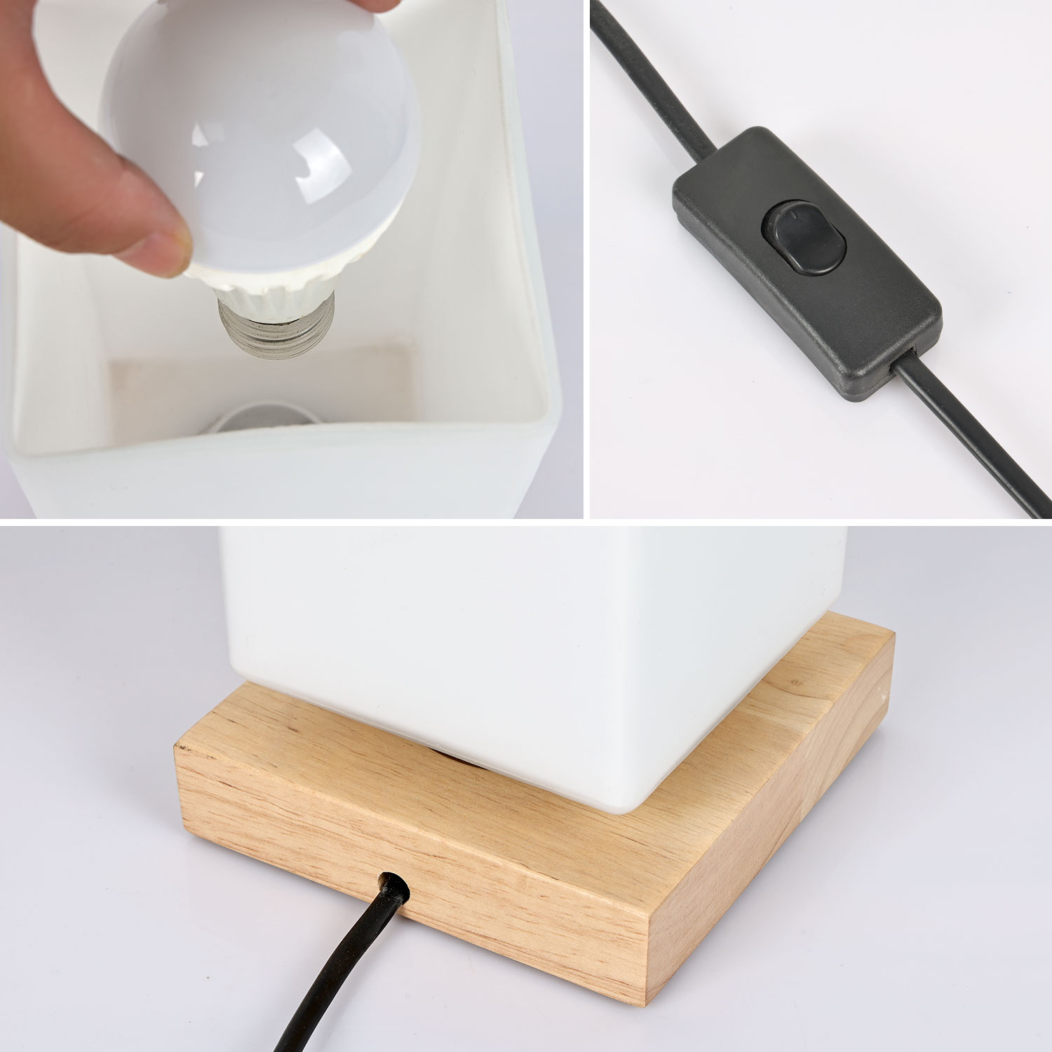 • 灯罩材质 木质、玻璃