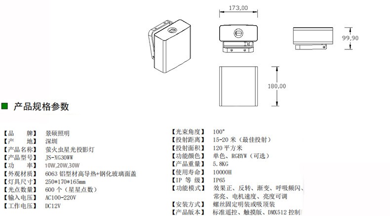 深圳市景硕照明科技有限公司主营产品:专业生产LED导光板灯、星光投影灯、LED投光灯、LED洗墙灯、LED埋地灯、LED点光源、LED线条灯等多种系列的户内外灯具。LED 光源,LED 驱动及驱动IC,LED 控制装置,农业照明,路轨灯/射灯,嵌入线型灯具,吊线线型灯具,台阶灯,隧道灯,壁灯(户外),挂墙灯,花园灯,射灯及落地灯,泛光灯,喷泉灯,停车场灯,LED灯带(户外),太阳能灯,智能照明控制、调光器及开关。