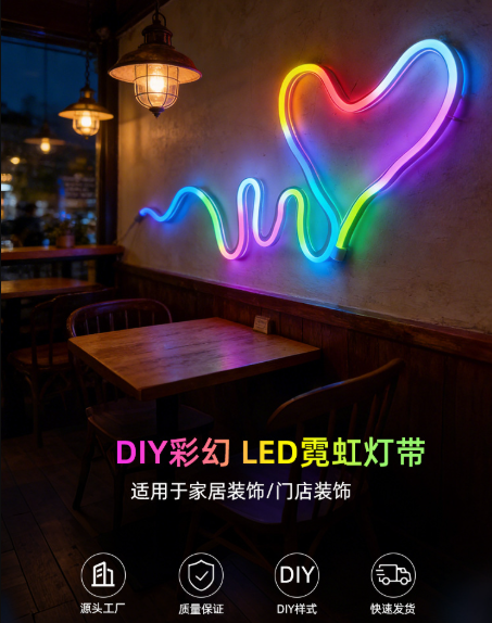 DIY幻彩霓虹灯带套装智能跑马流水效果室内外氛围装饰