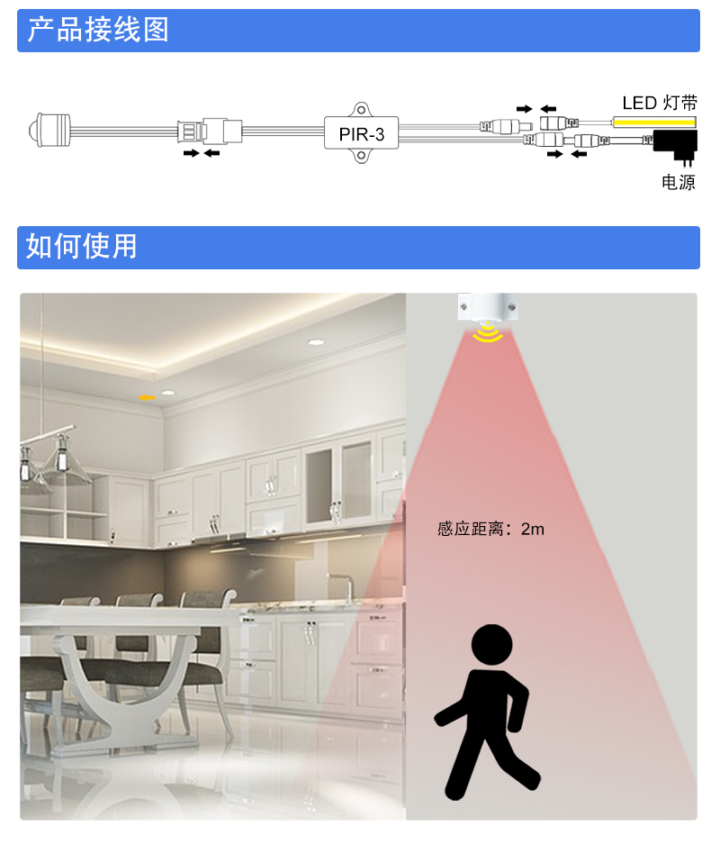 DC12V~24V6A人体红外开关可调节延时LED灯条感应器