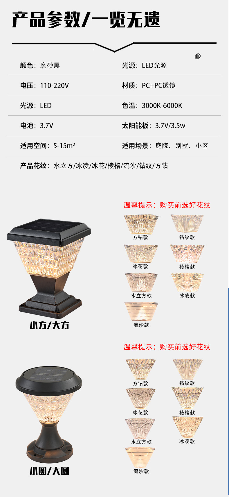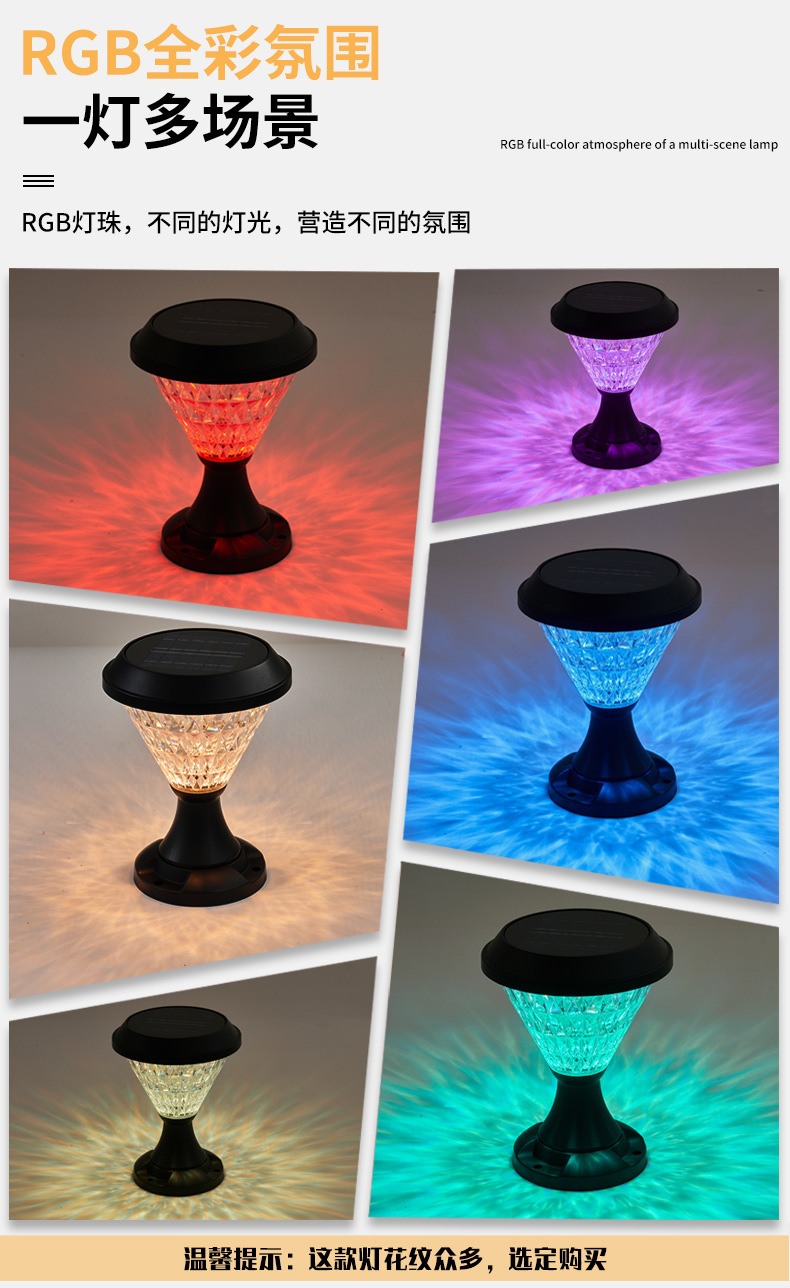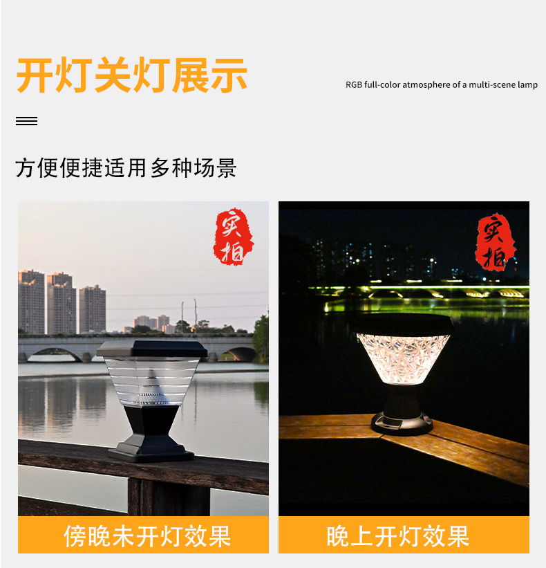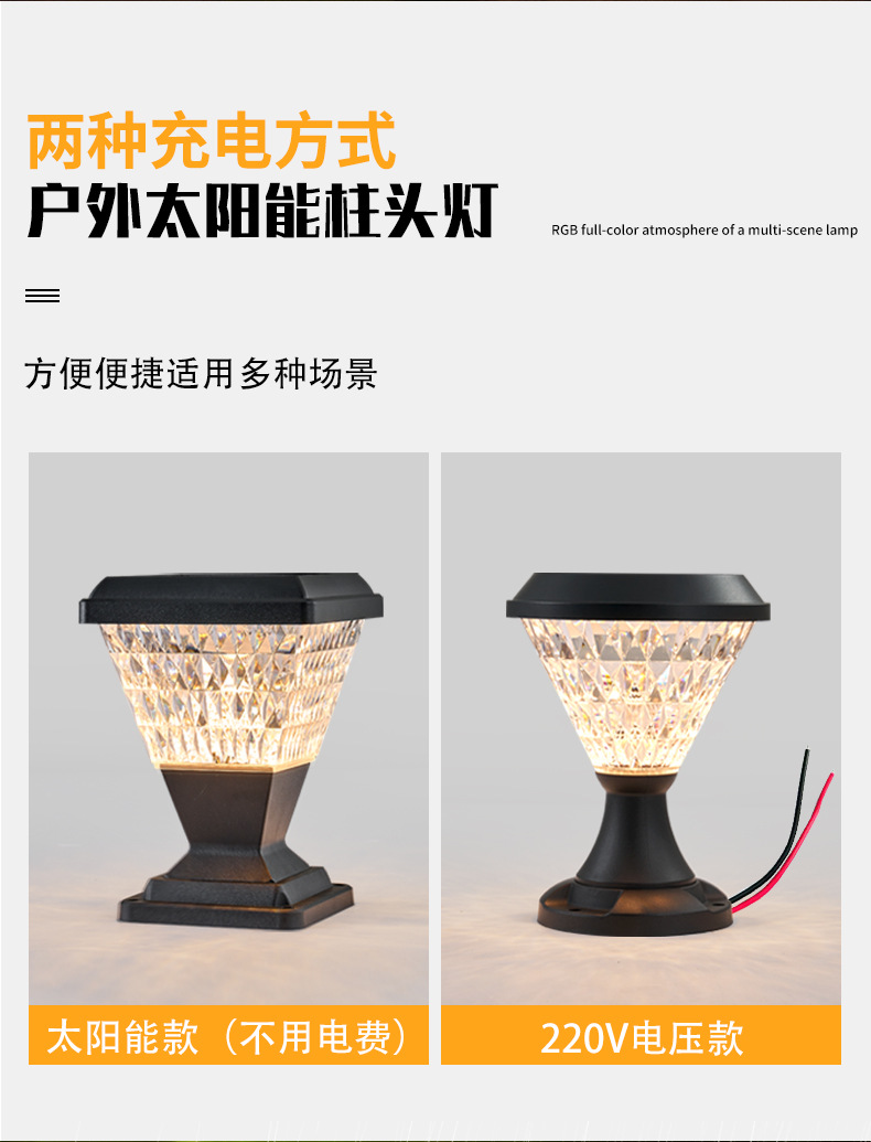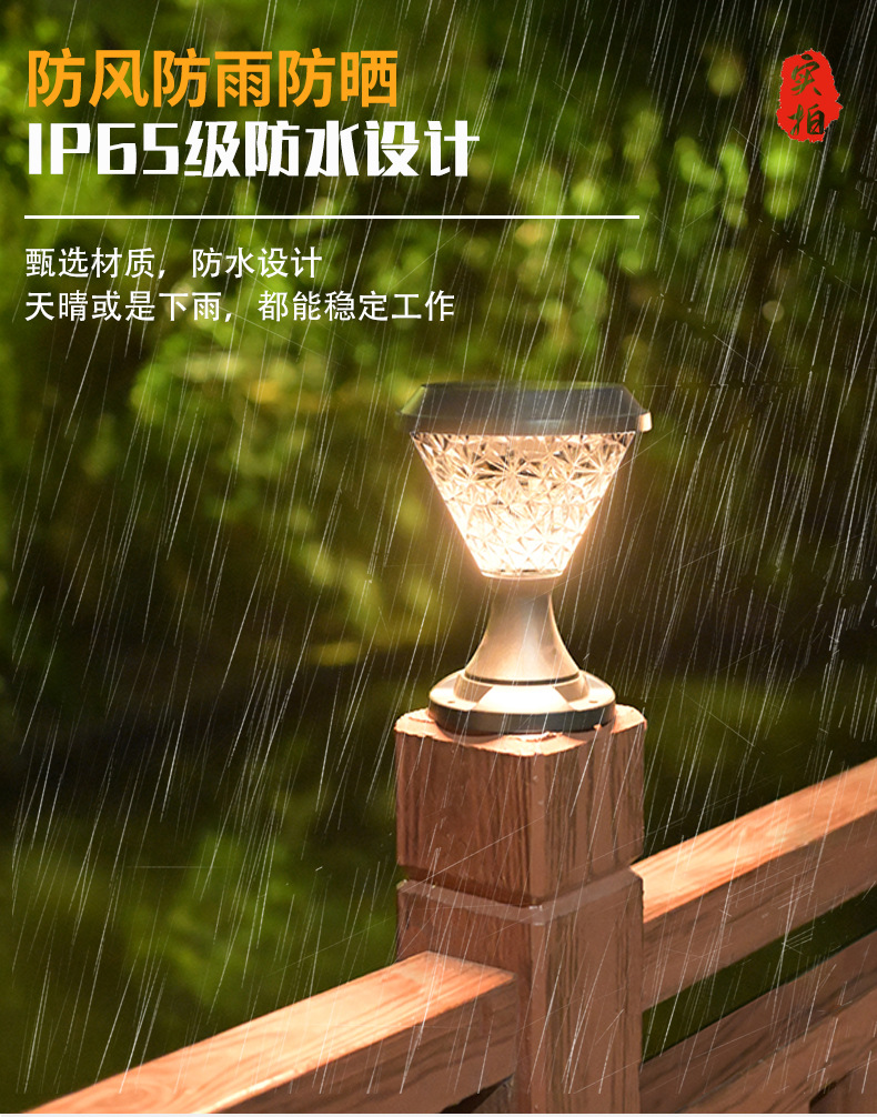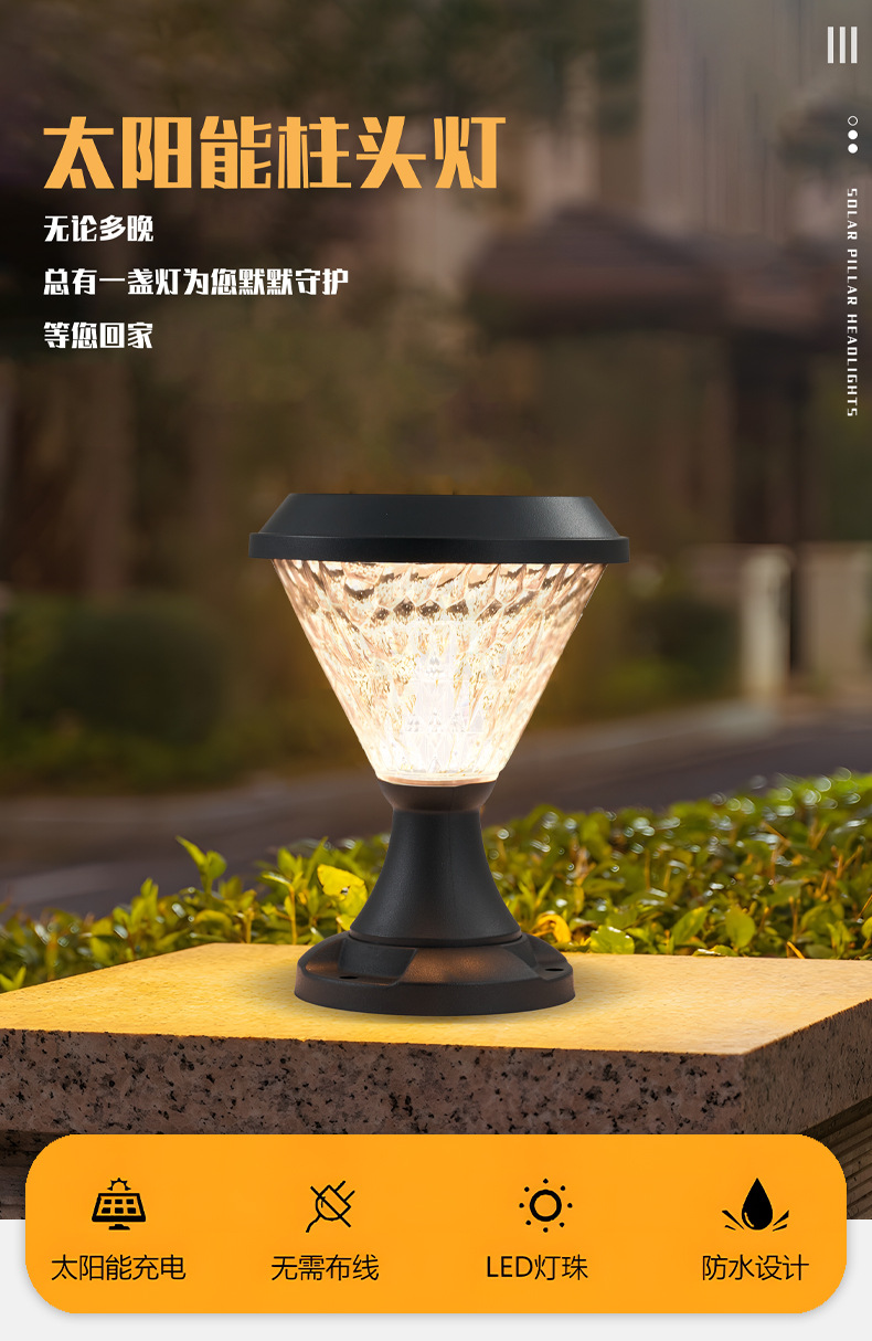 太阳能柱头灯别墅户外花园防水led中山跨境门柱庭院灯感应